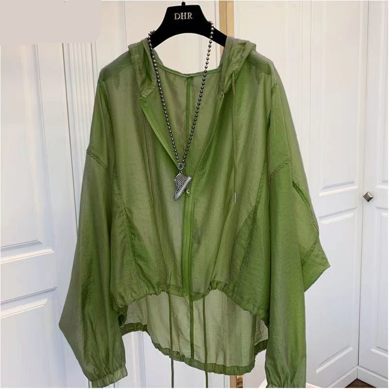 ?Jackets Women Hooded Summer Sun-proof Zipper Coats Thin Loose See Through Outerwear Breathable Outwear Lightweight Clothes Black