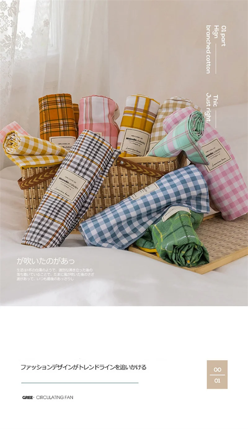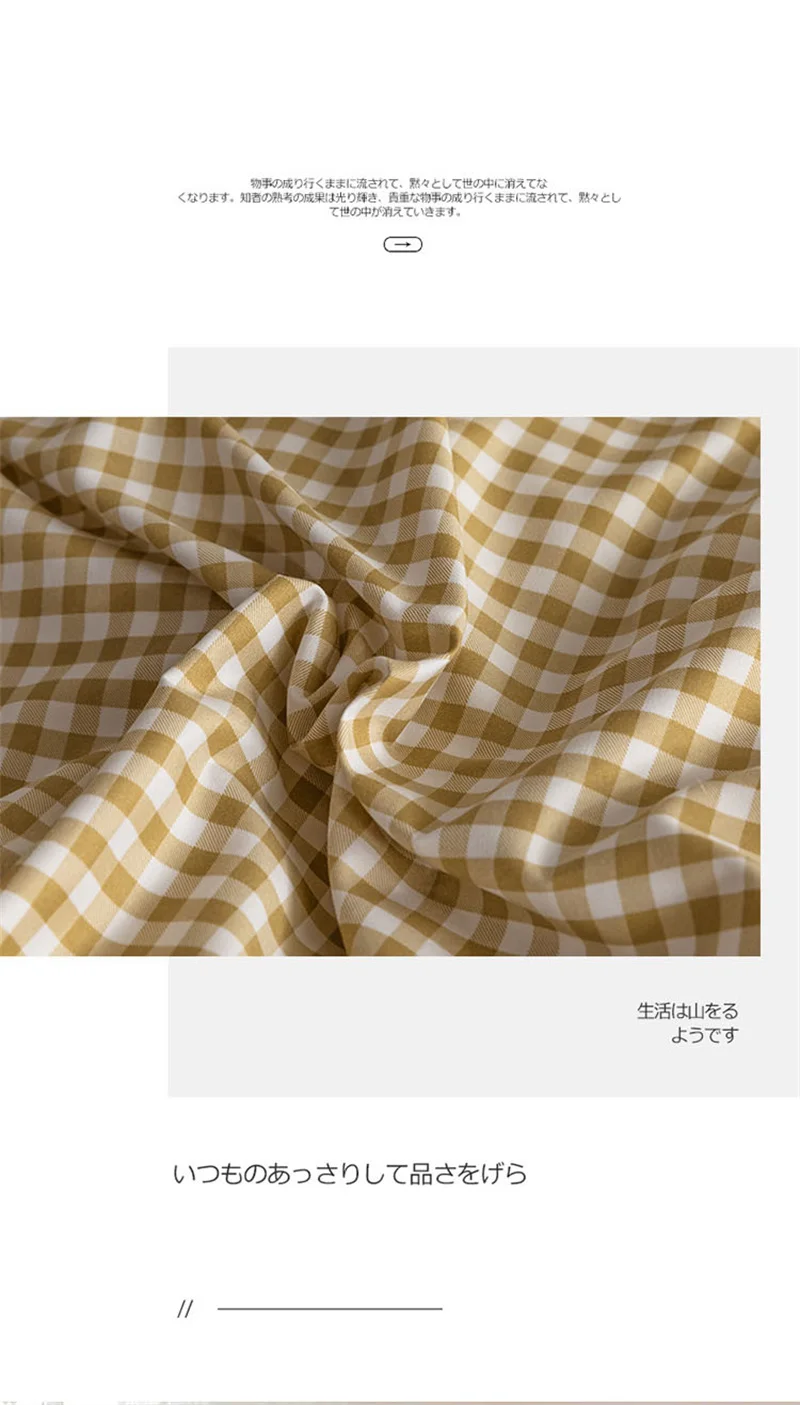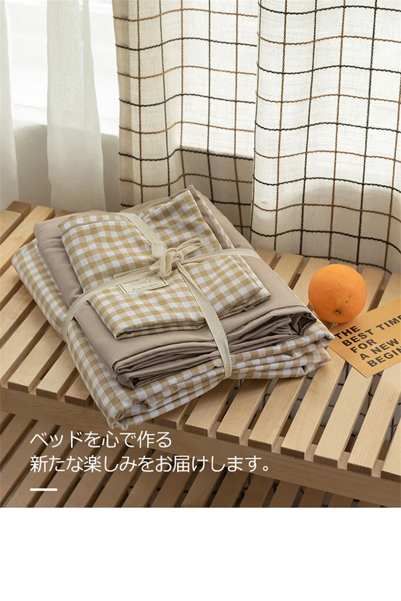 HULIANFU Japan Style Plaid Pattern Bedding Set Queen Simple Washed Cotton Bedding Duvet Cover Set with Sheets Quilt Cover Pillow Covers