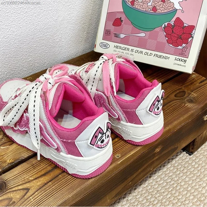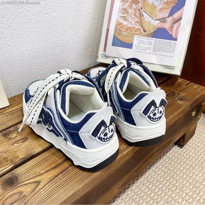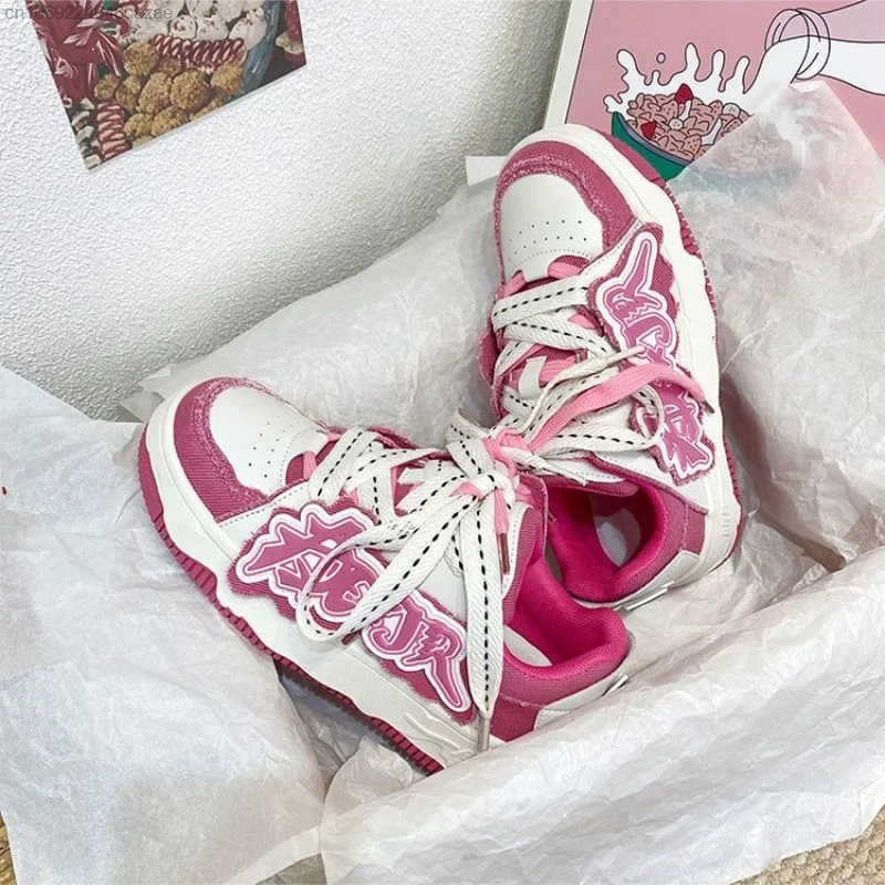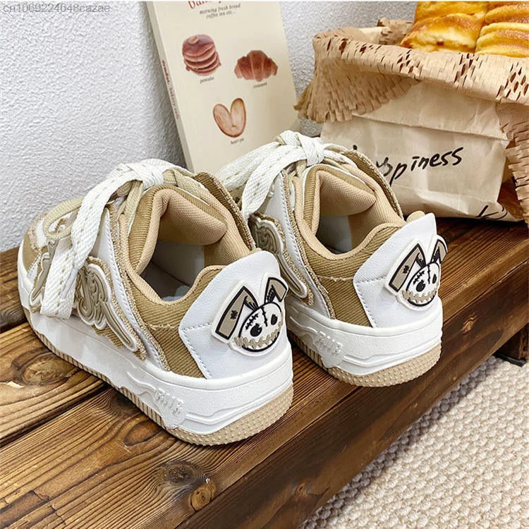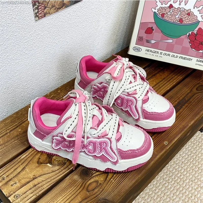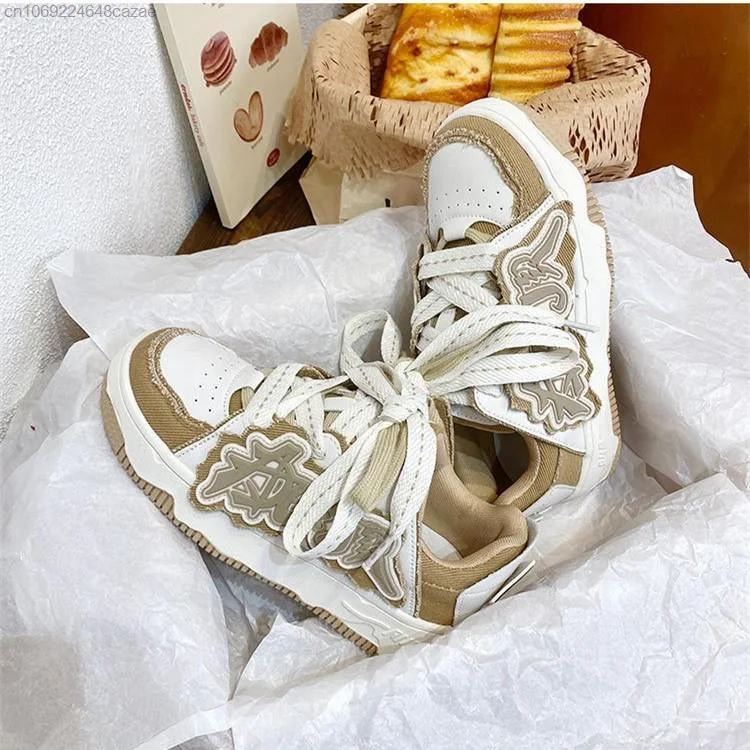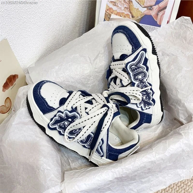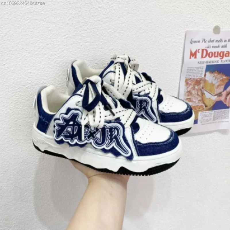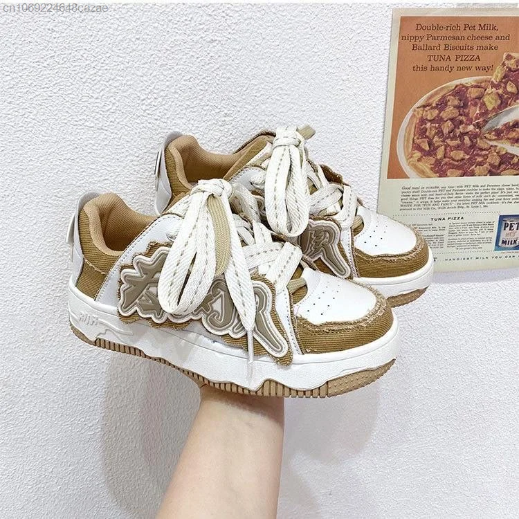 Korean New Fashion Sneakers Pu Leather Patchwork Y2k Women's Sport Shoes Letter Decal Couple Shoes Thick Heels Versatile Sneaker