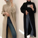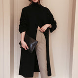 Korean Style Turtleneck Long fall winter Sweater Dress Side split Female Pullover mujer sueteres