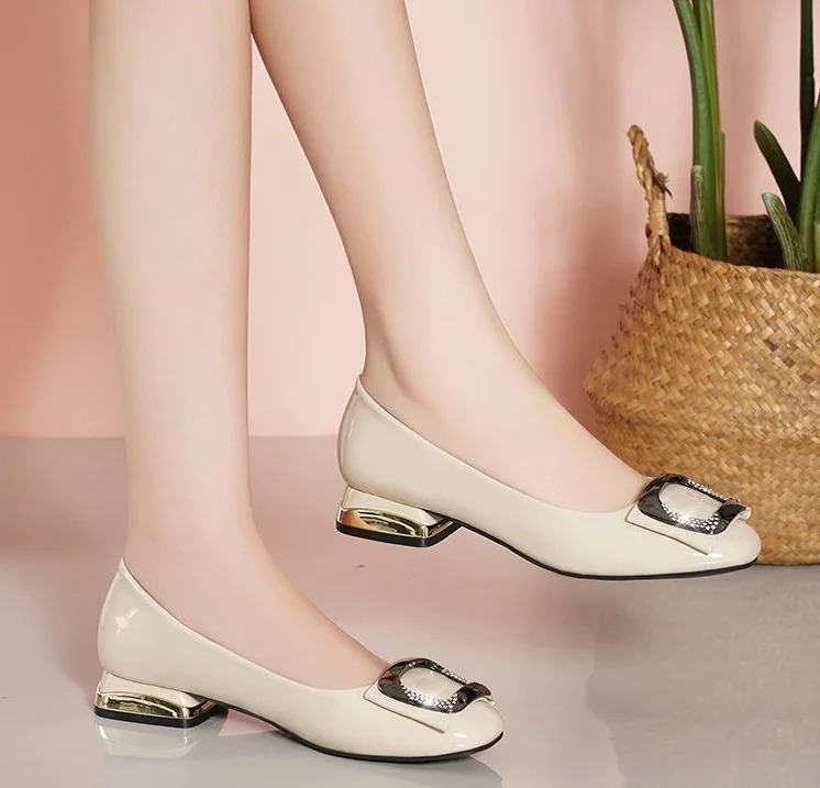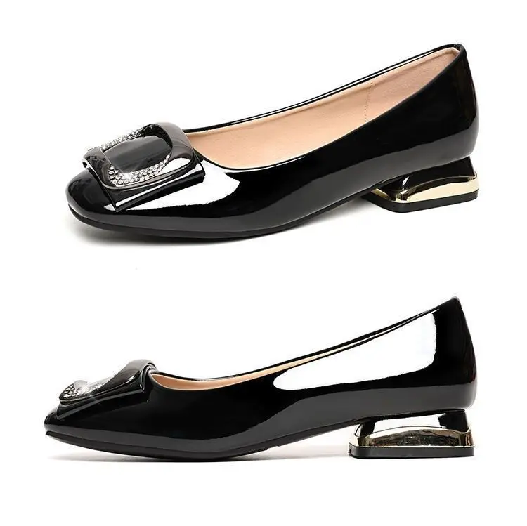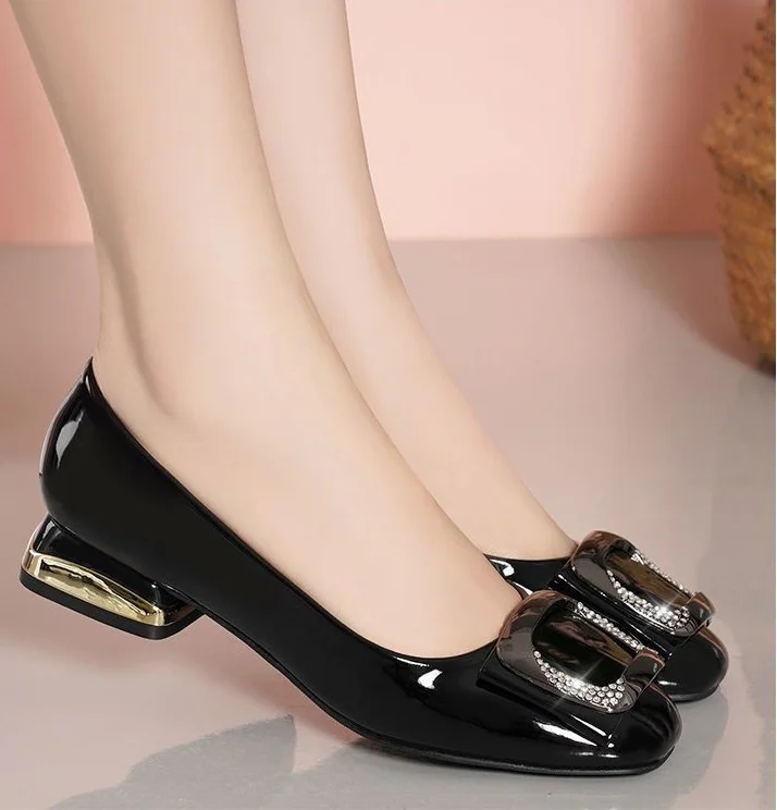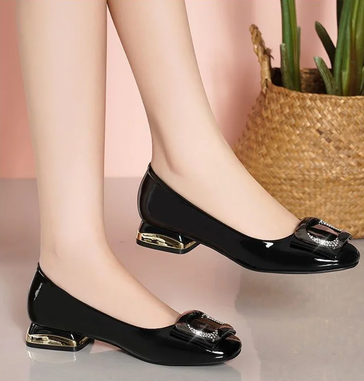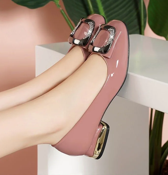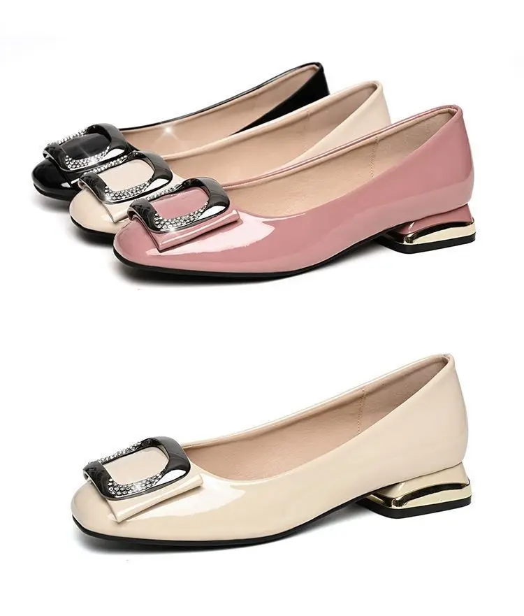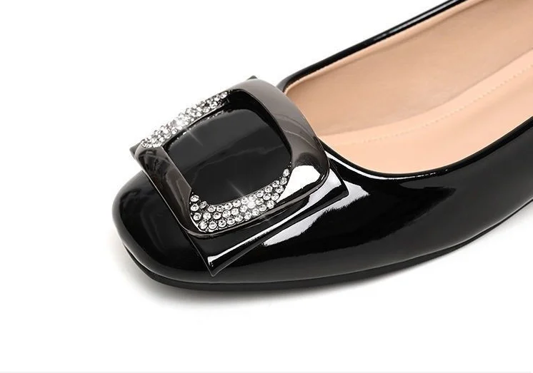 Ladies Summer Footwear Diamond Shoes for Women Normal Leather Casual with Crystals Low Heel Elegant Blue Rhinestone Office