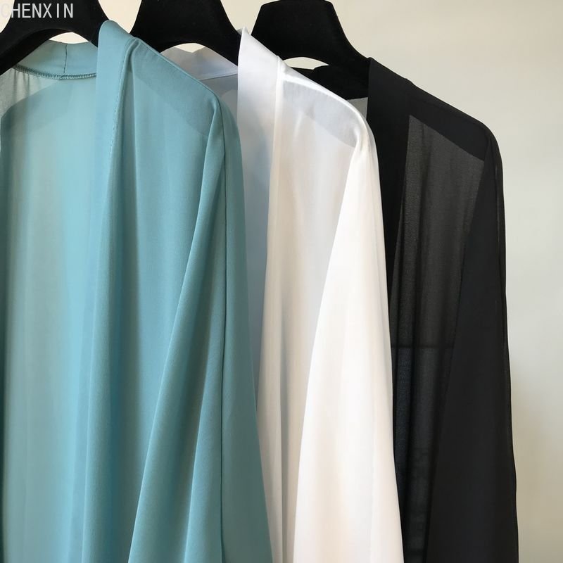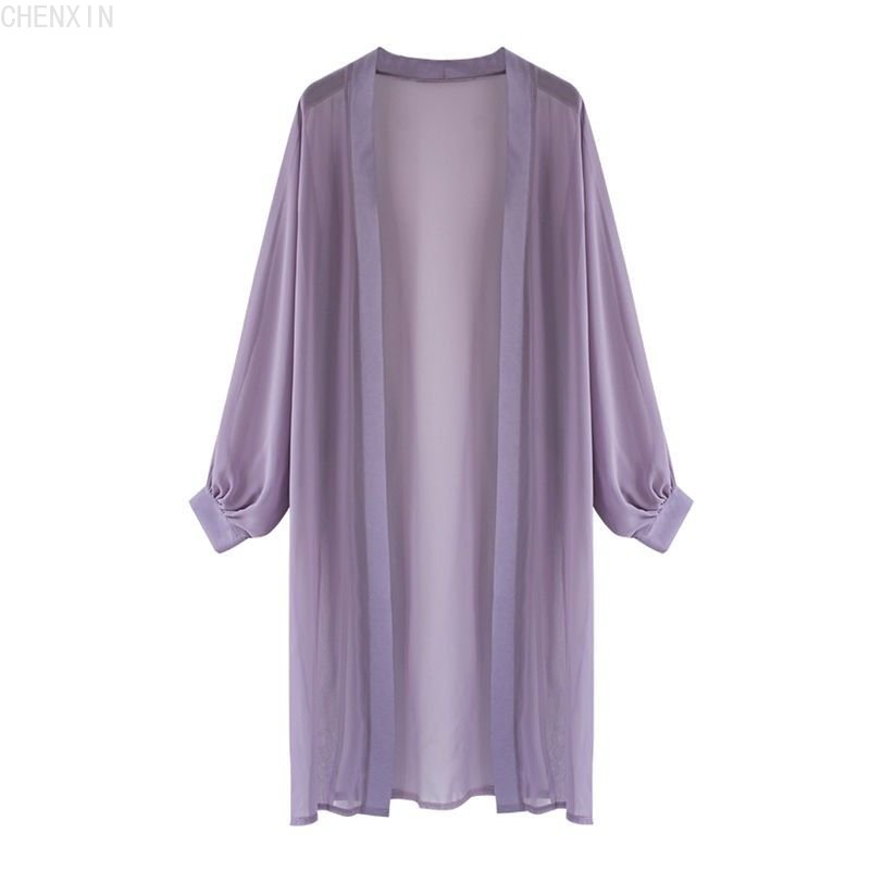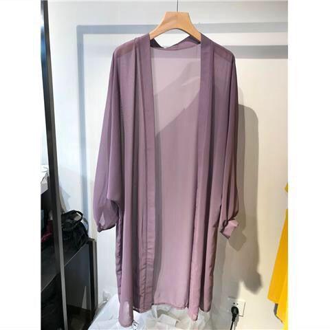Hulianfu long Jacket Women Summer Thin Loose See-through Sunscreen Pure Long Sleeve Sexy Coat Chiffon Bohemian Female New Fashion Tops