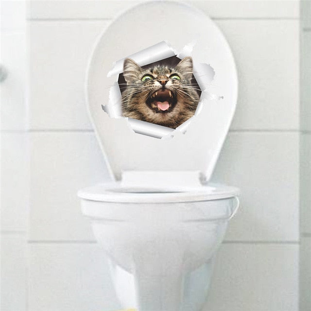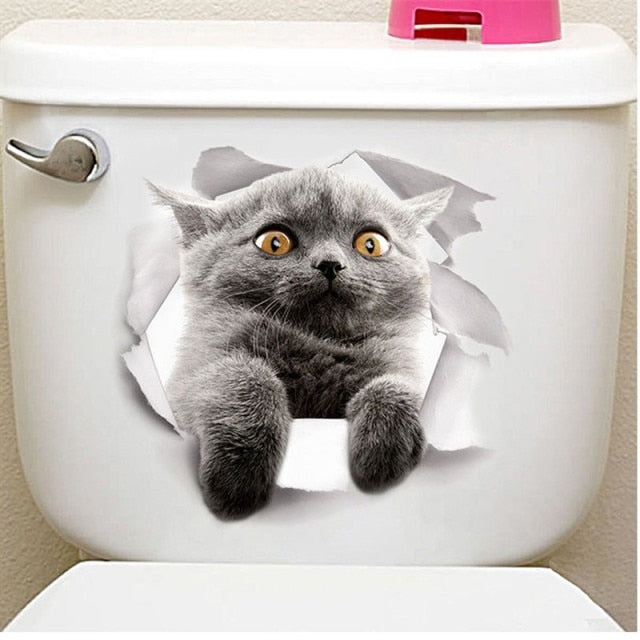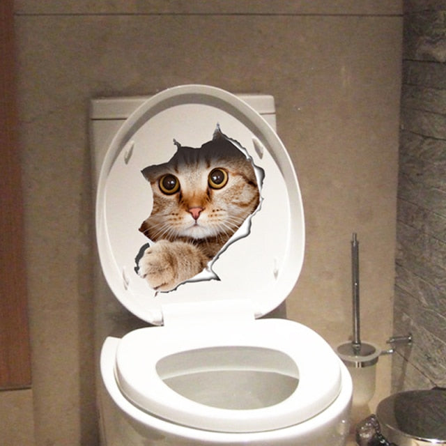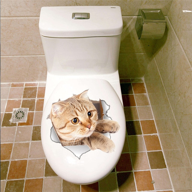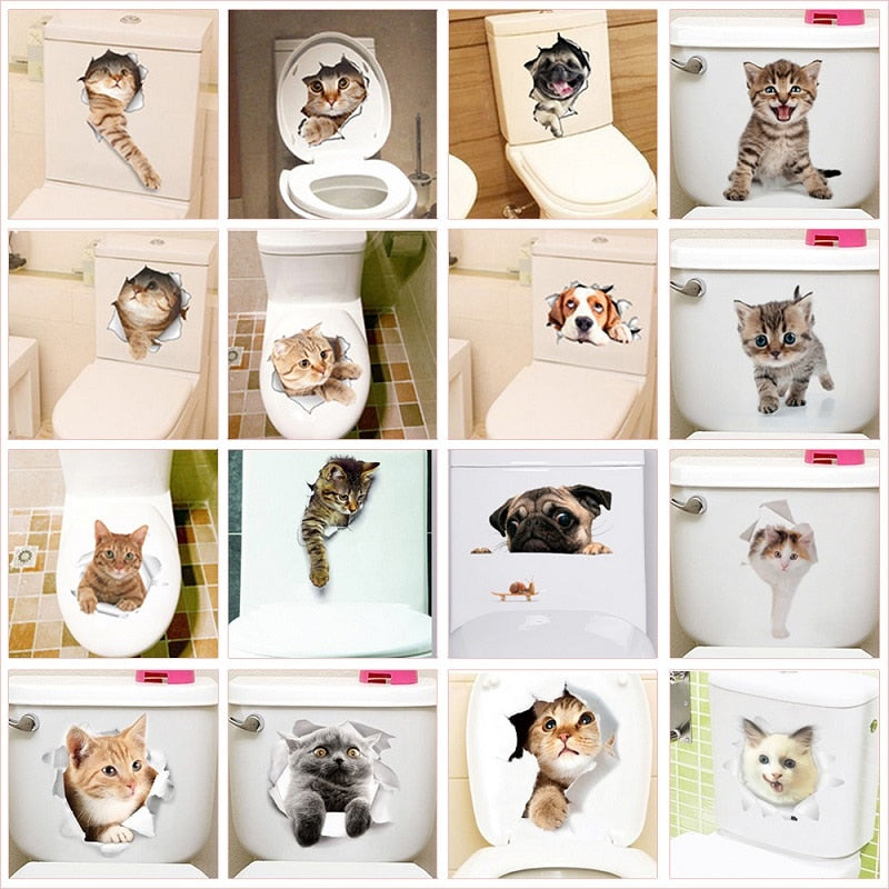 HULIANFU Lovely Cat Dog Toilet Stickers Home Decoration Diy Funny Cartoon Animal Wc Mural Art Vivid 3d Kitten Puppy Safari Pvc Wall Decal