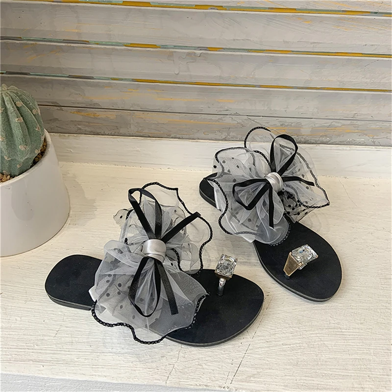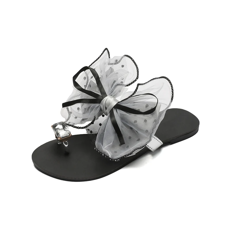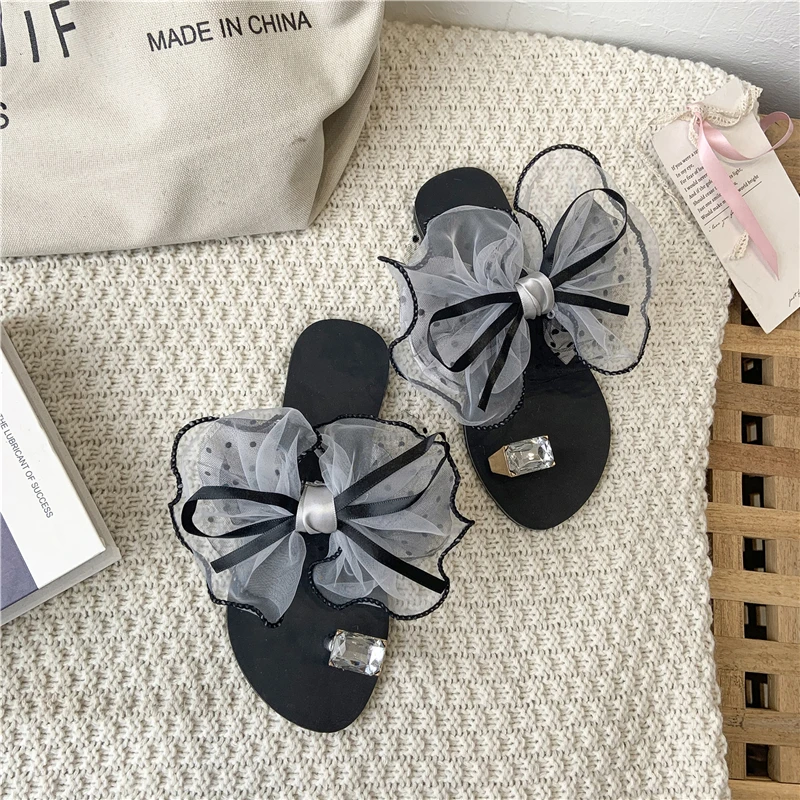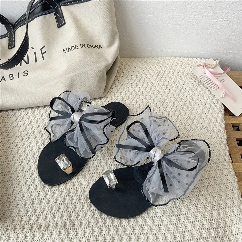 Luxury Celebrities Slippers Women Larger Rhinestone Ring Toe Cute Polka Dot Bow-tie Flats Flip Flops Indoor Shoes Ladies Sexy