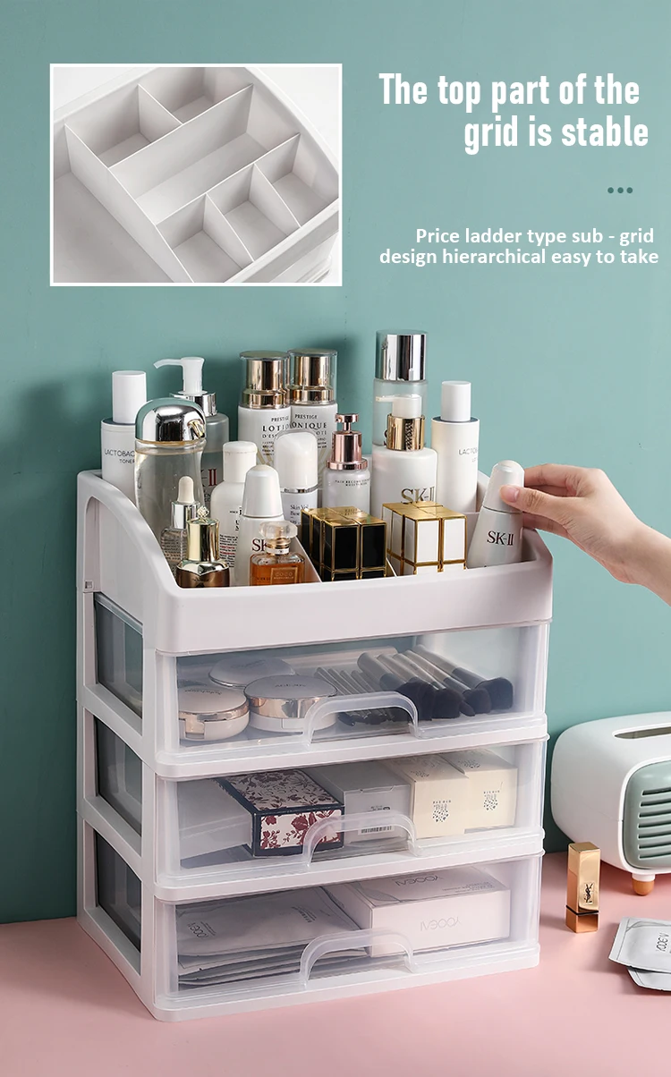 HULIANFU Make Up Case Jewelry Container Cosmetic Storage Box Makeup Organizer Drawers Jewellery Organizer Makeup Brush Holder Brush Lipst