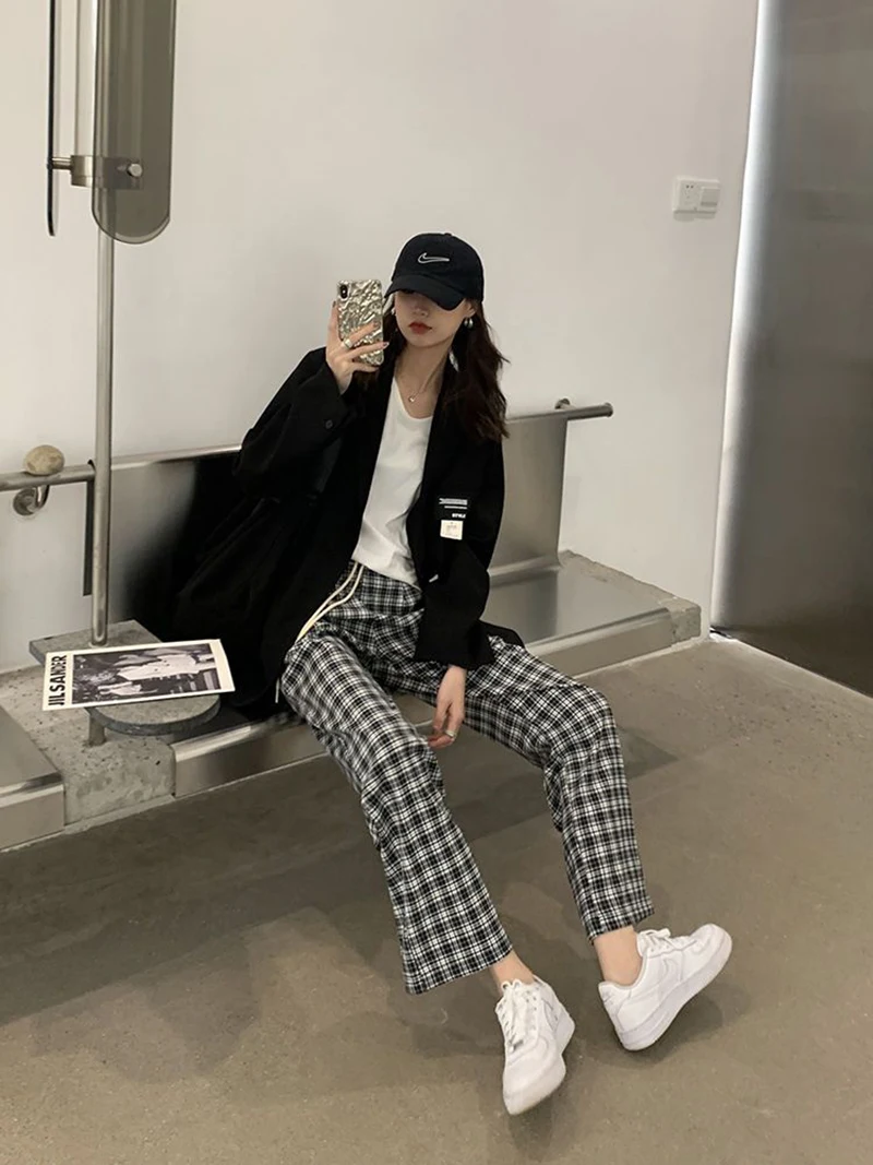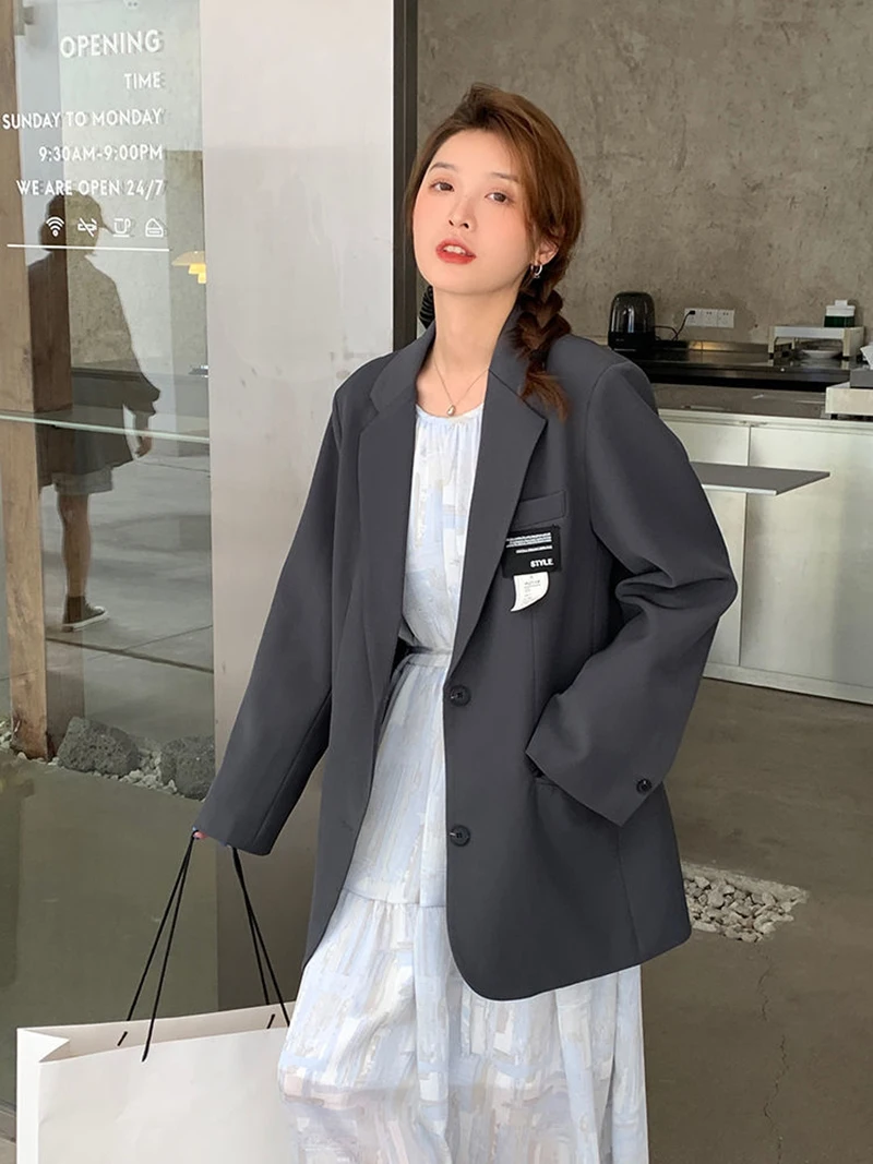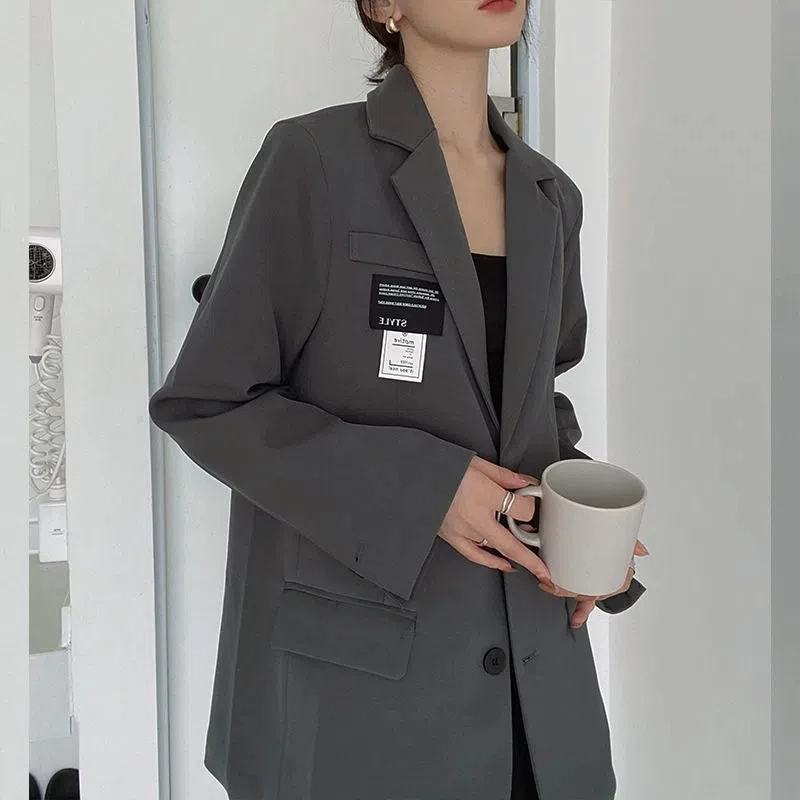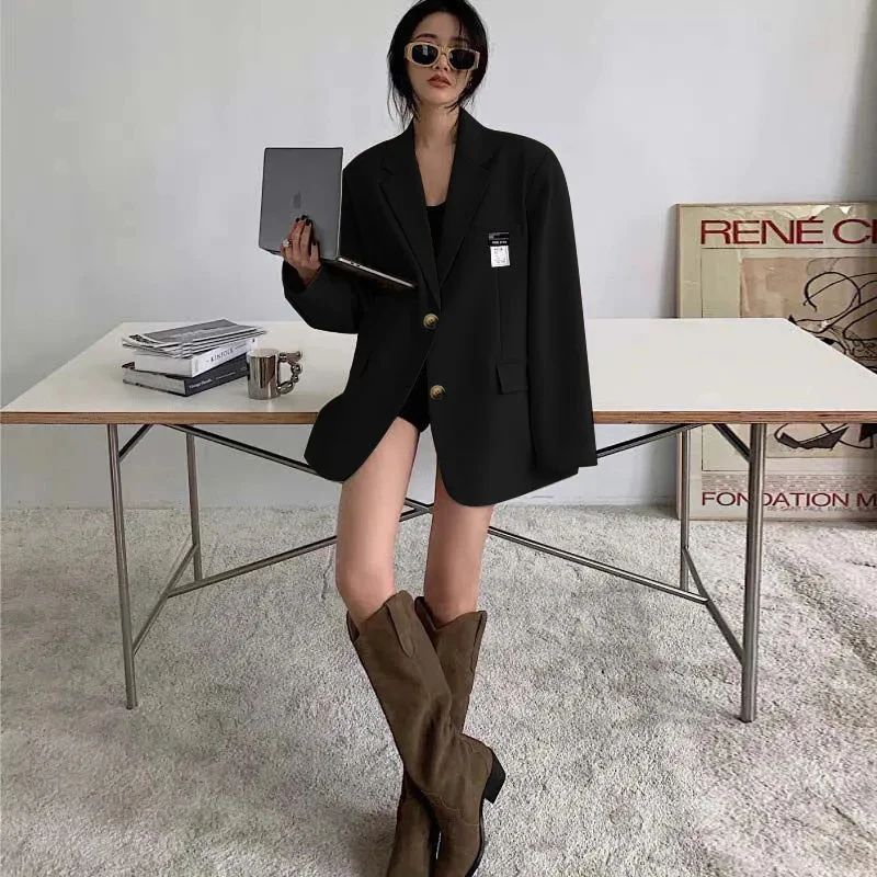 Blazers Women Elegant Solid Suit Jackets Korean Office Lady Simple Single Breasted Loose Leisure All-Match Coat Top New
