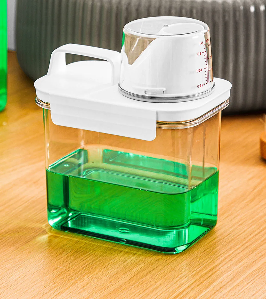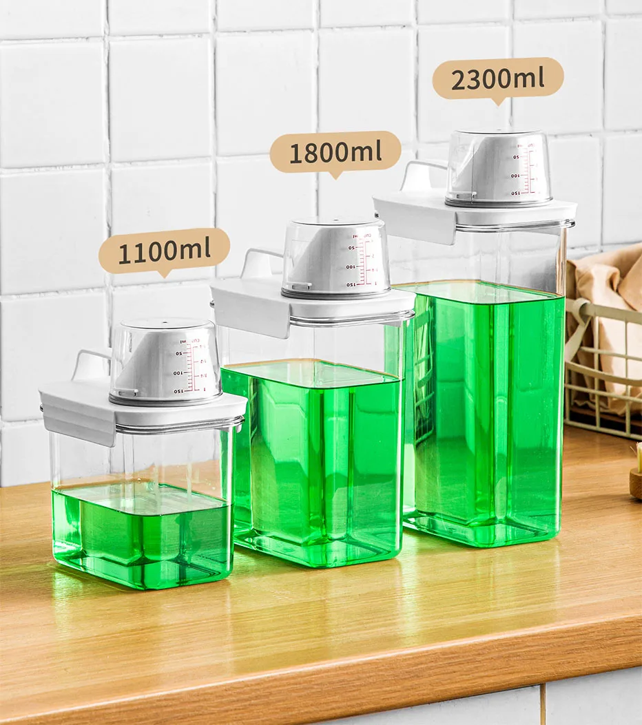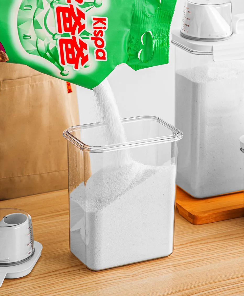Multi-function,the container is not only ideal for laundry detergent but also can be used for pet food.laundry powder.cereal, snacks, nuts, sugar, coffee, tea, etc