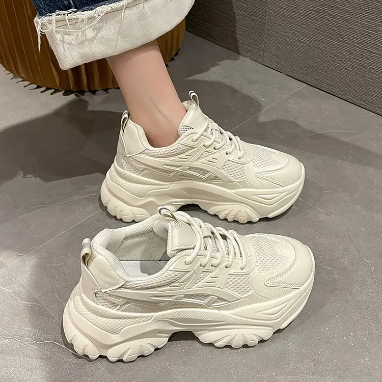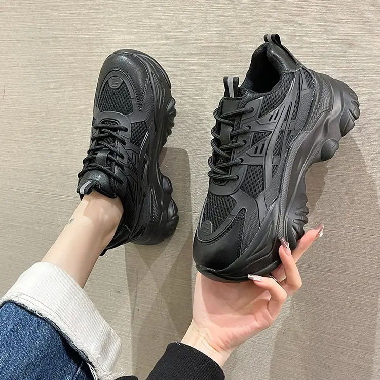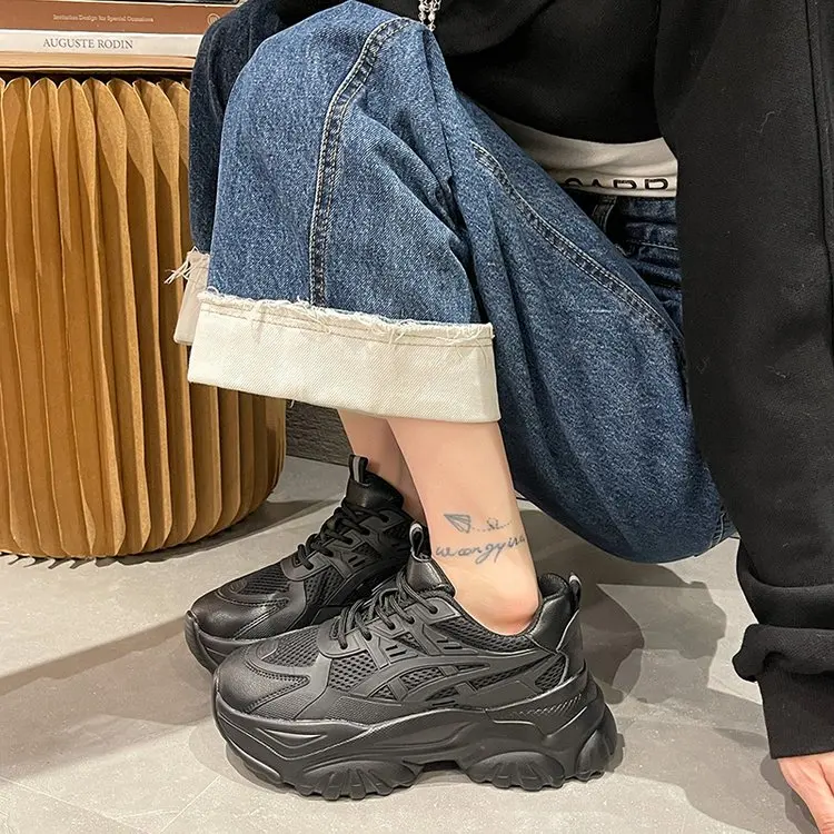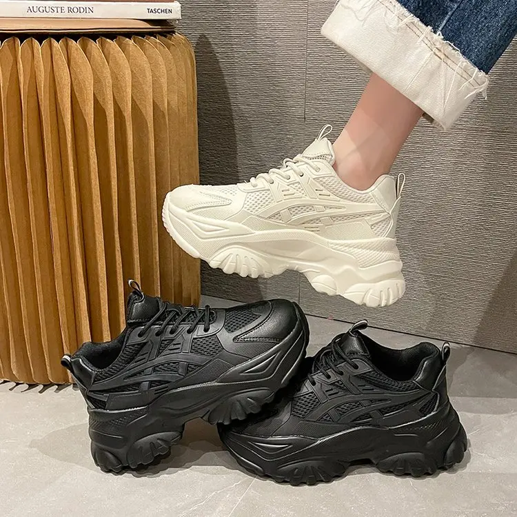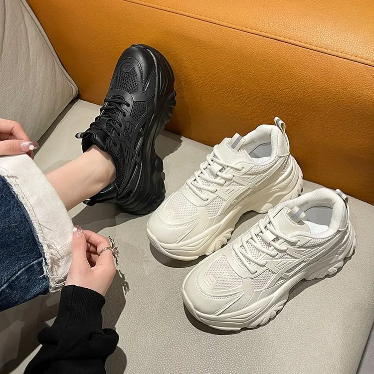 New Black Dad Chunky Sneakers Casual Vulcanized Shoes Woman High Platform Sneakers Lace Up White Sneakers Women