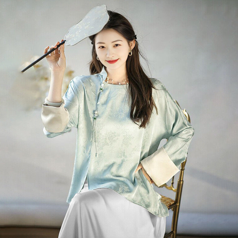 New Chinese top, summer skirt, button-down coat women's fashion suit, satin national style shirt B0319