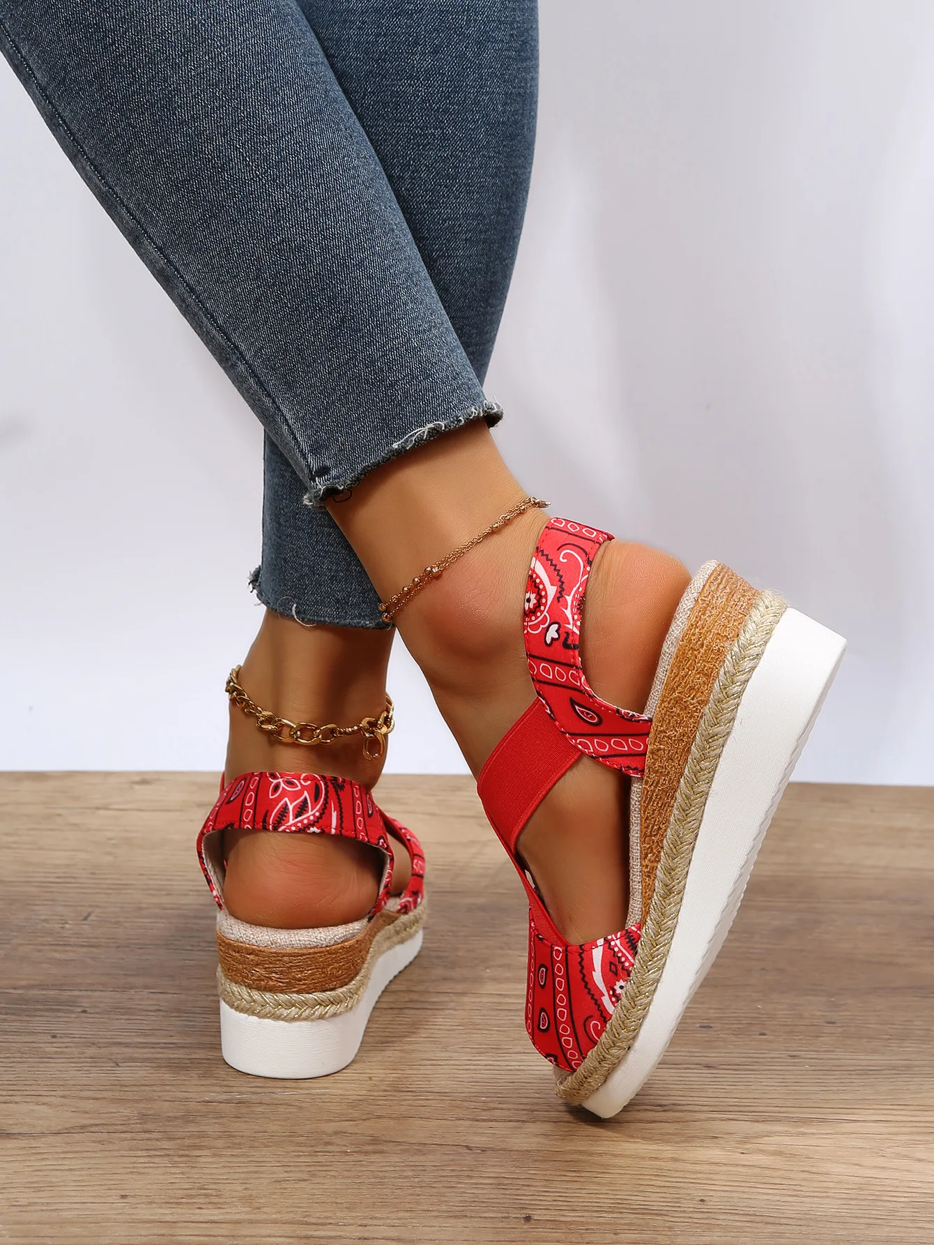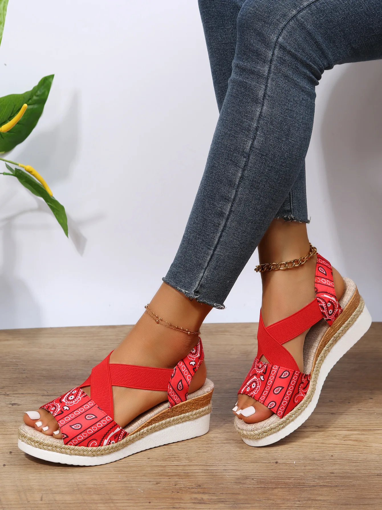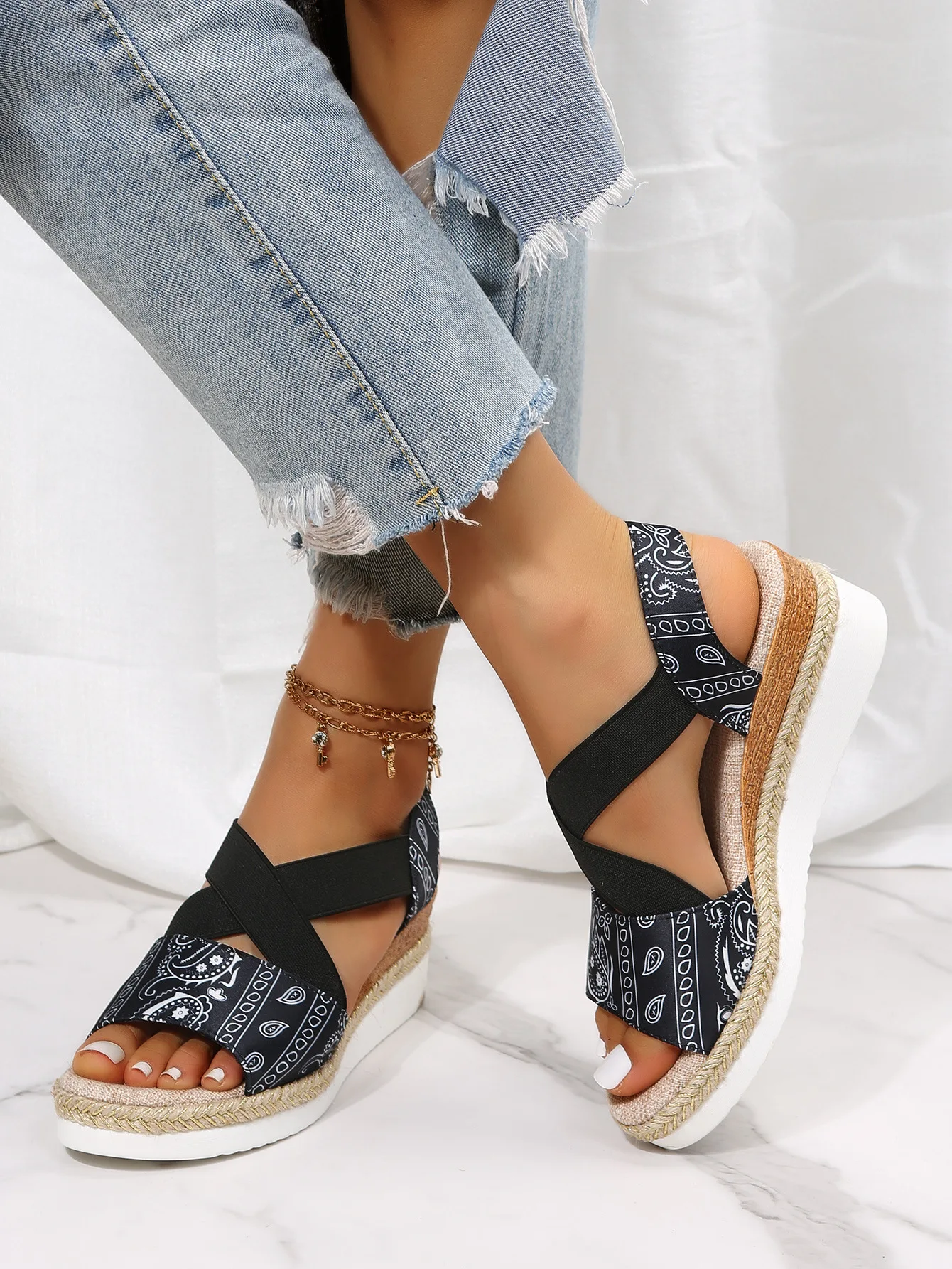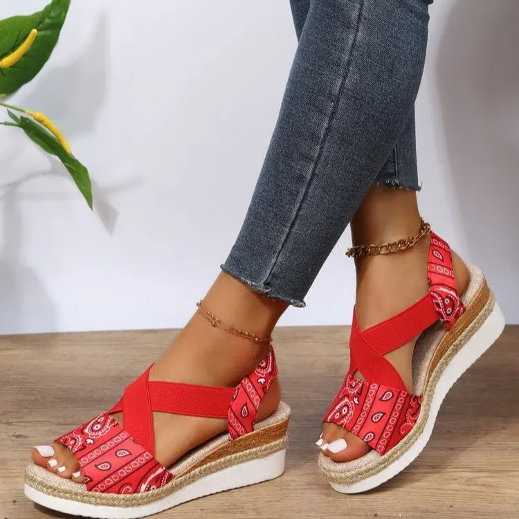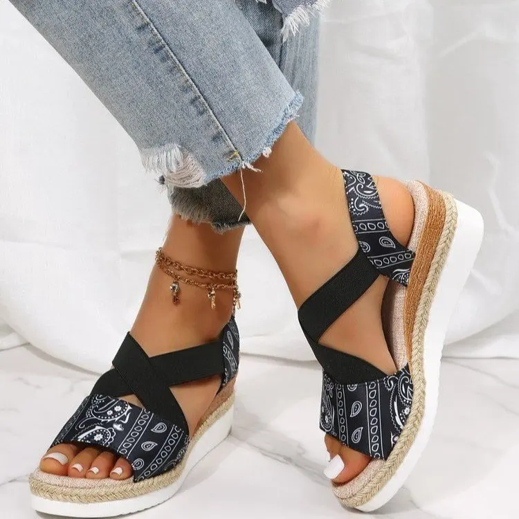 new Summer Women's Wedges Sandals Peep Toe Ladies Cross-tied Slides Thick Bottom Fashion Open Toe Female New Woman Shoes
