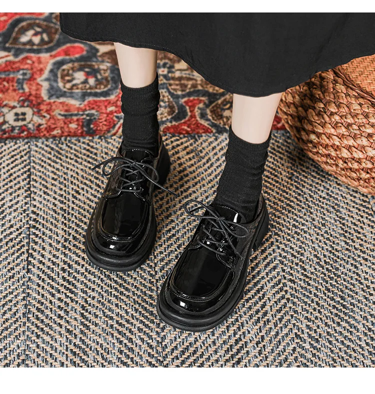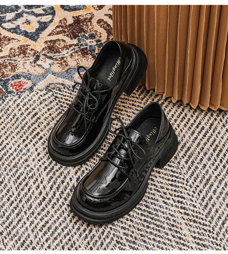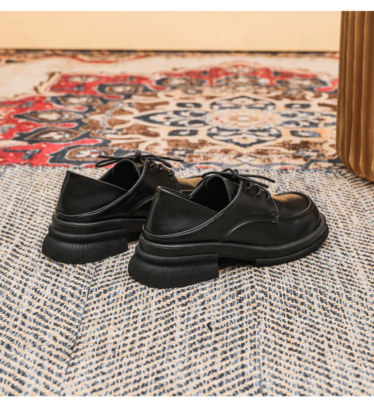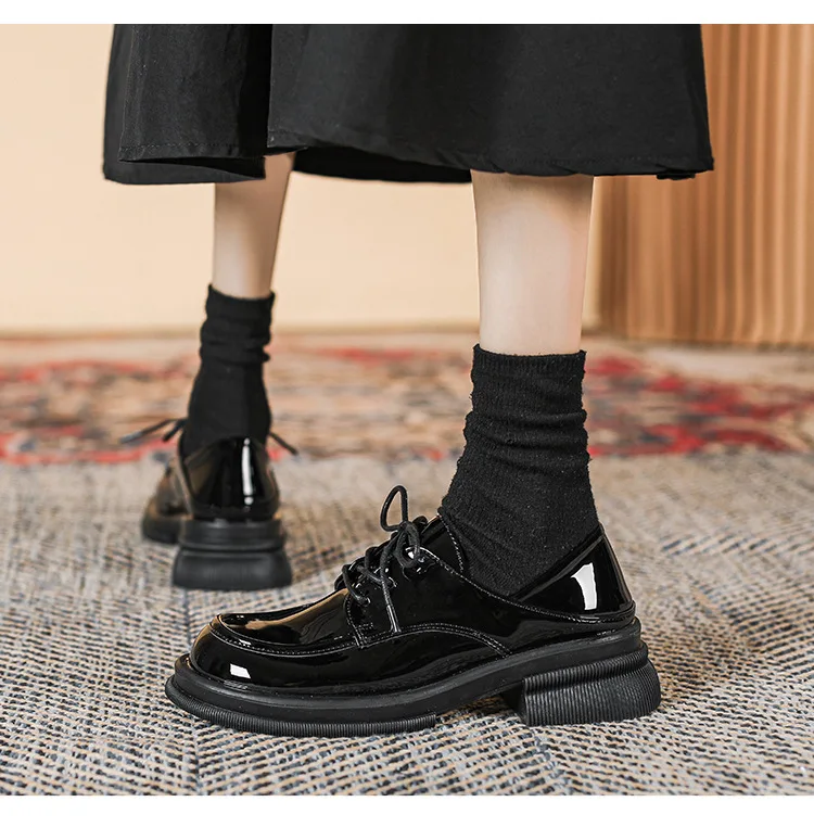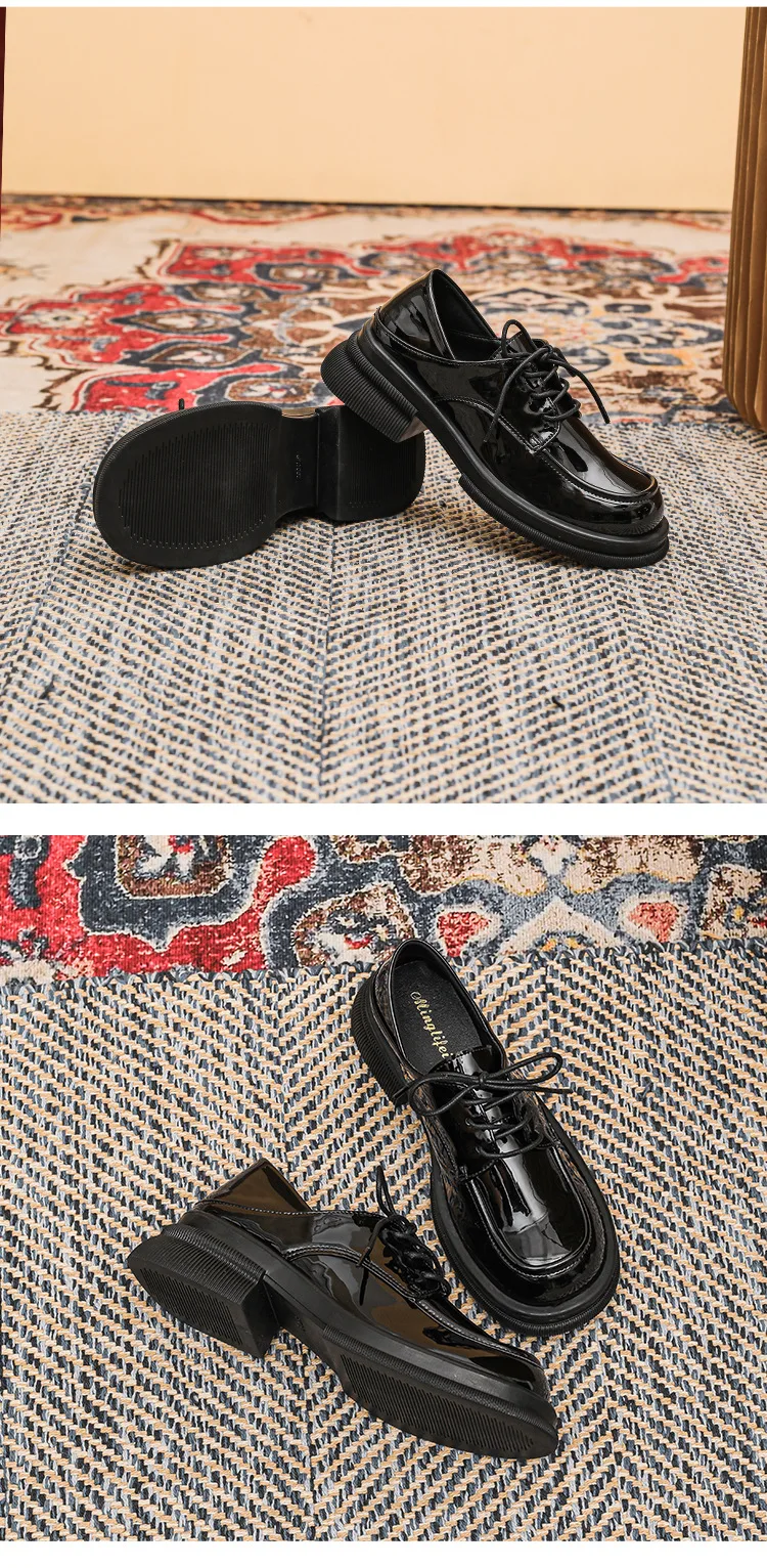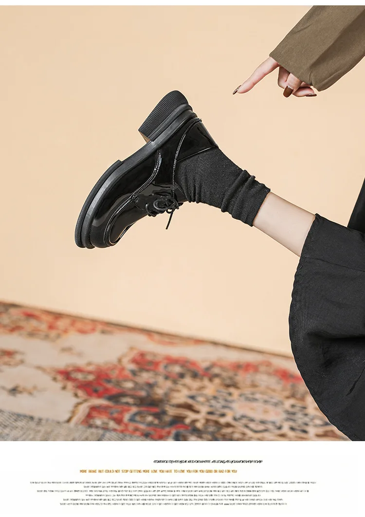 New women's loafers Black lace-up shoes Round head high heel thick base high design Leather shoes Stylish party and work