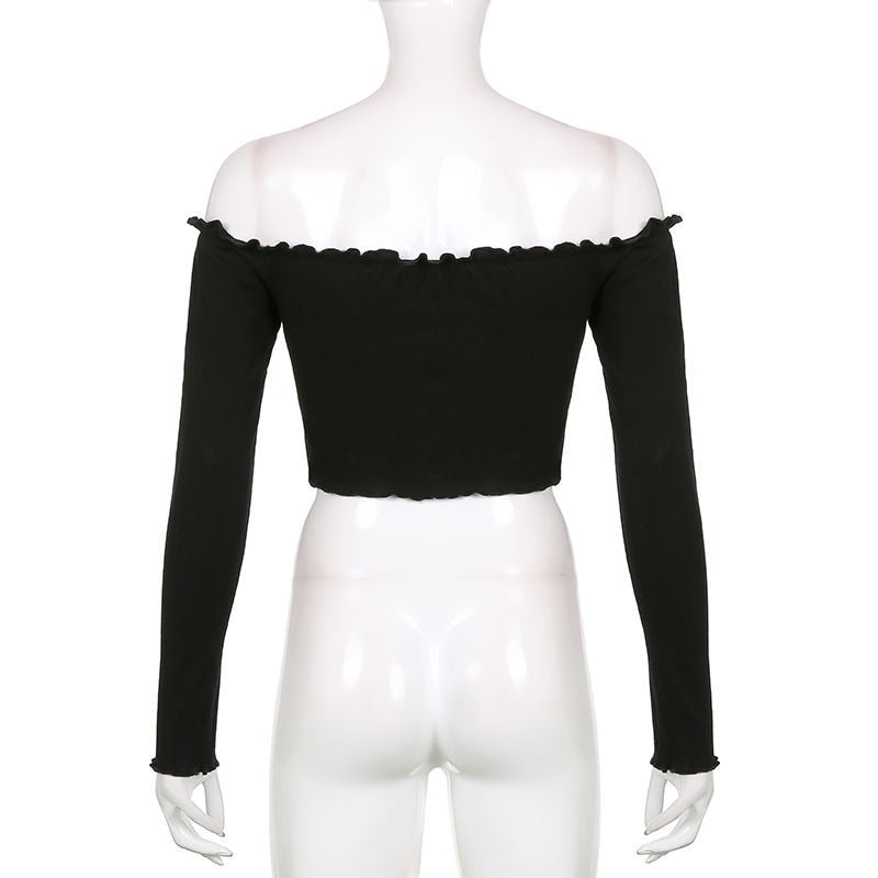 Hulianfu Off Shoulder Sexy Gothic Crop Top T-Shirts Women Clothes crop Rhinestone Skeleton Grunge Clothing Tee Y2K Shirt Core Tops vegan