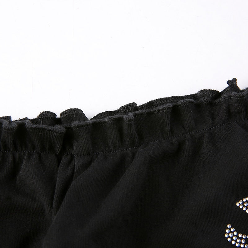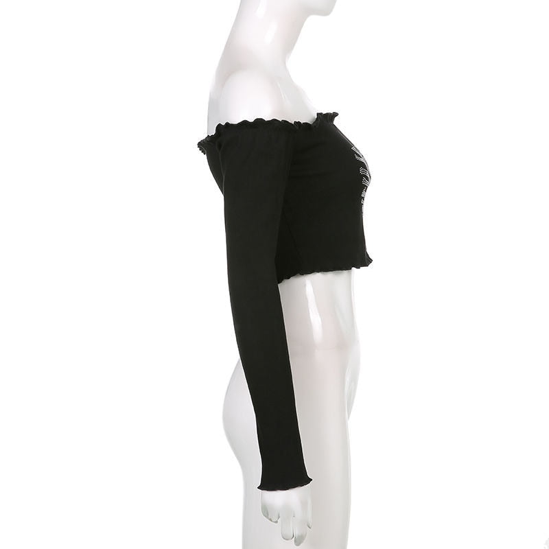 Off Shoulder Sexy Gothic Crop Top T-Shirts Women Clothes crop Rhinestone Skeleton Grunge Clothing Tee Y2K Shirt Core Tops vegan