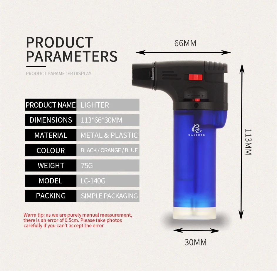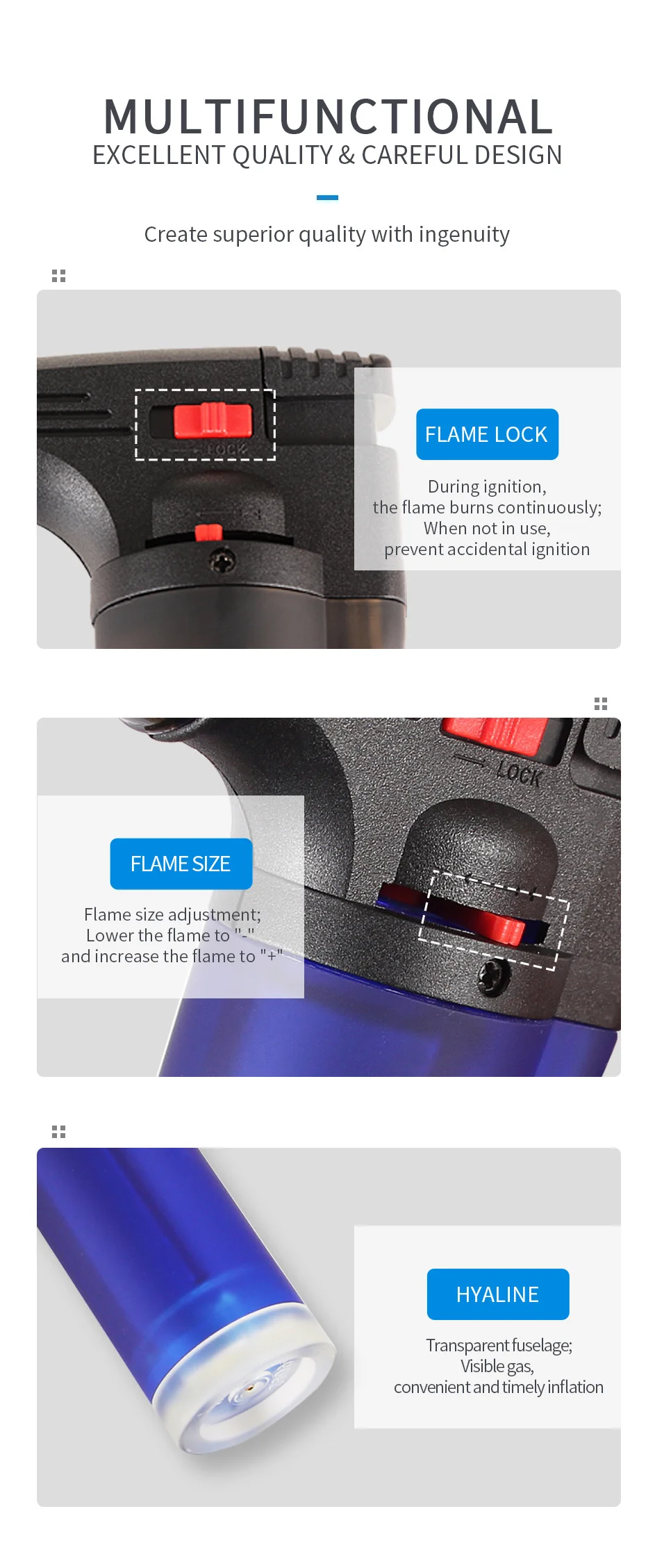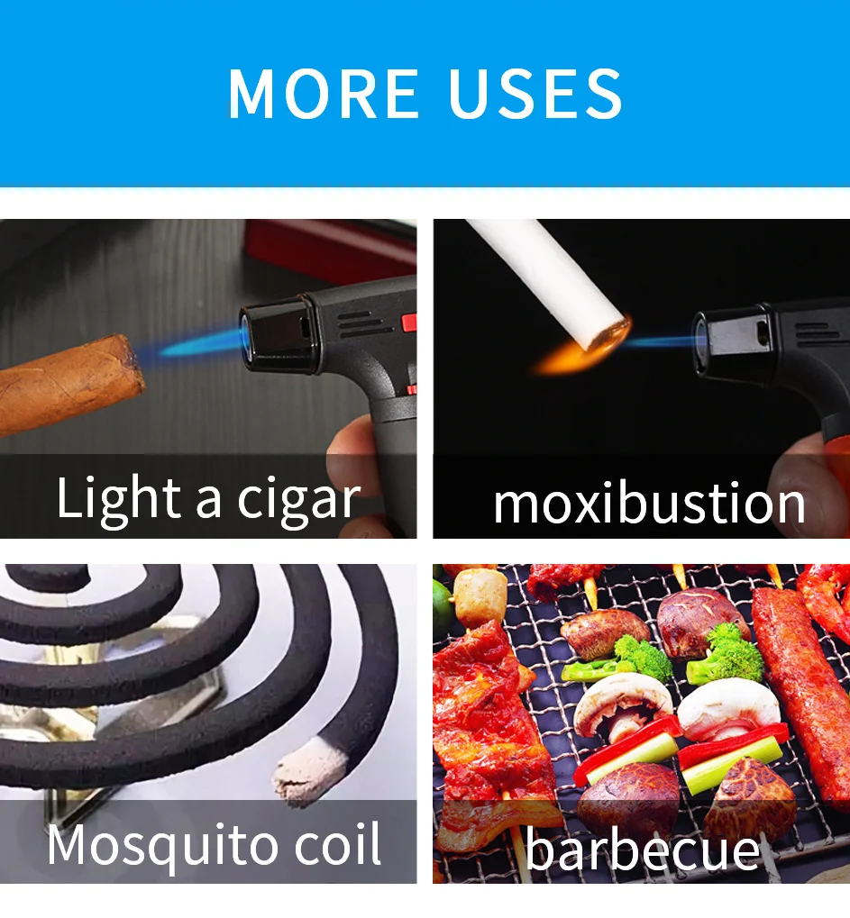 HULIANFU Plastic 1 Jet Cigar Lighter Gas Fire Starter 1300C Blue Flame Spray Gun Butane Torch Lighters Gadgets 1 PC Color Random Color