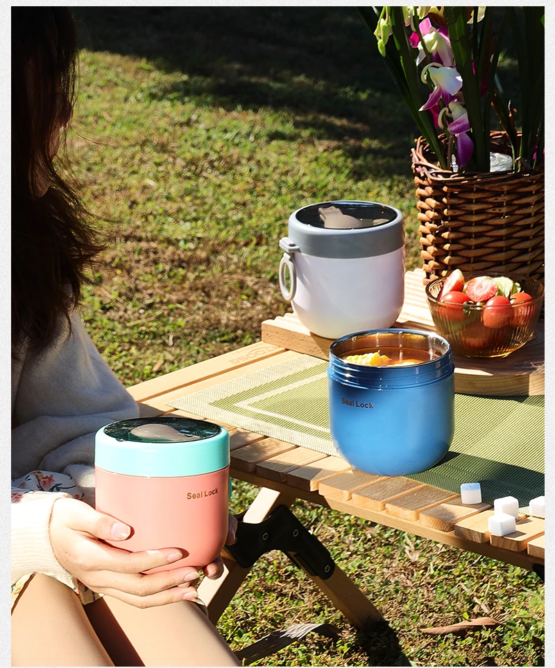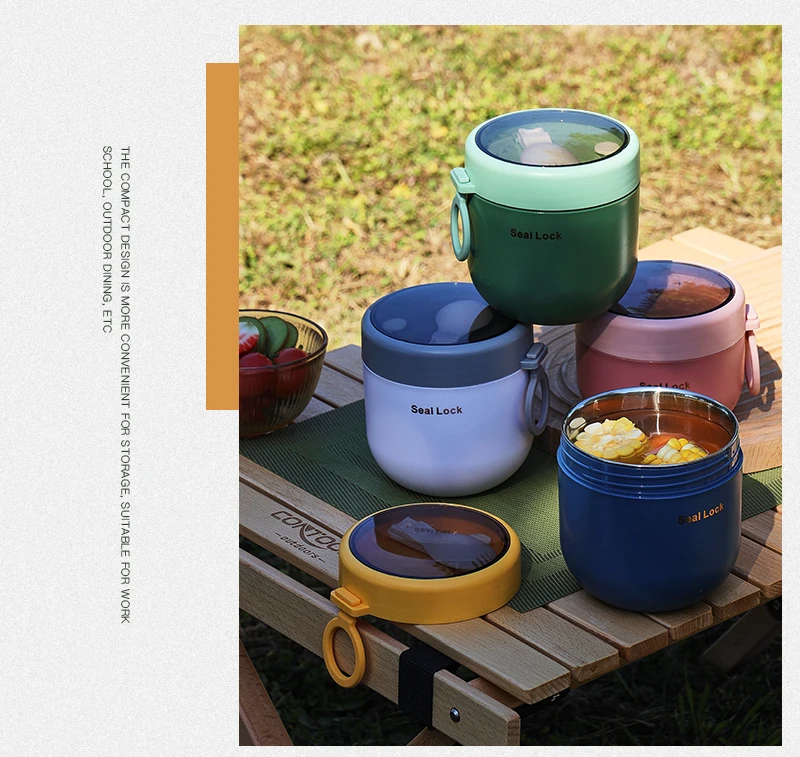 HULIANFU Portable Breakfast Cup With Lid and Spoon Multifunction Oatmeal Cup Cereal Nut Yogurt Mug Snack Cups Small lunch box soup bowl