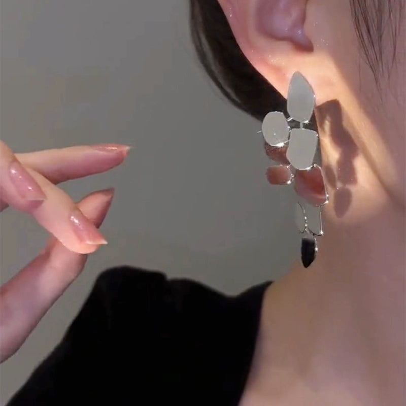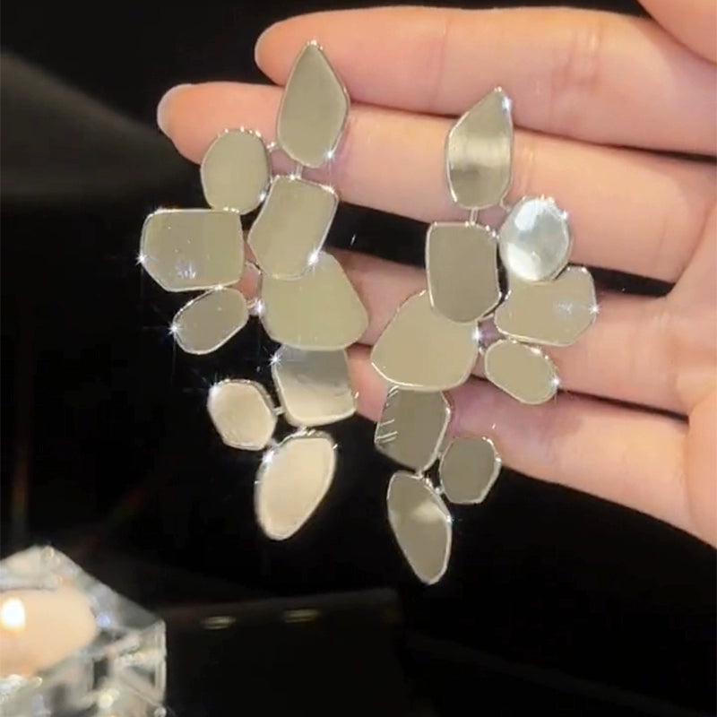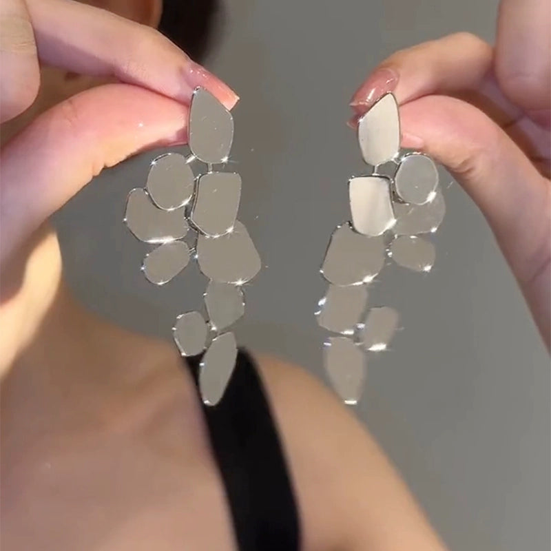 Premium sense exaggerated silver sequined earrings women's light luxury personality silver needle earrings temperament geometric earrings
