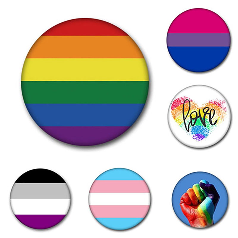 HULIANFU Pride Rainbow Flag Badge Round Icons Gay Pins Homosexual Love Metal Badges Decorative Brooch Pins Jewelry Accessories Gifts