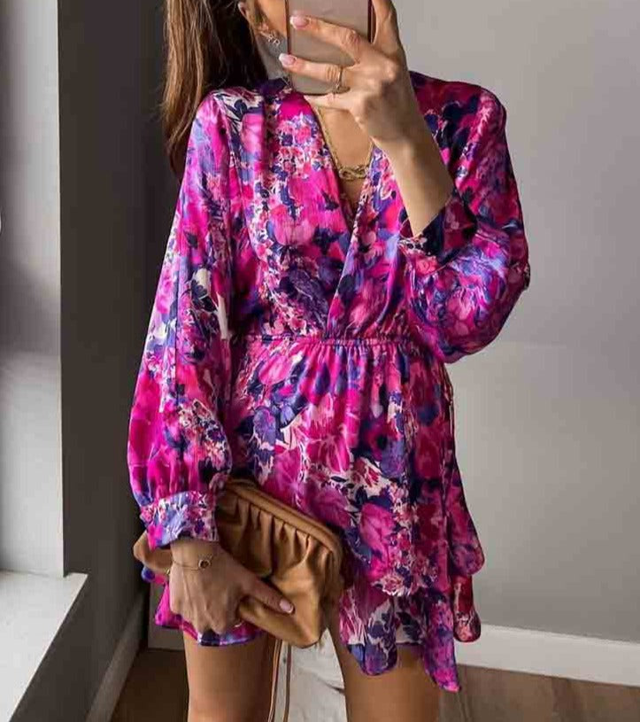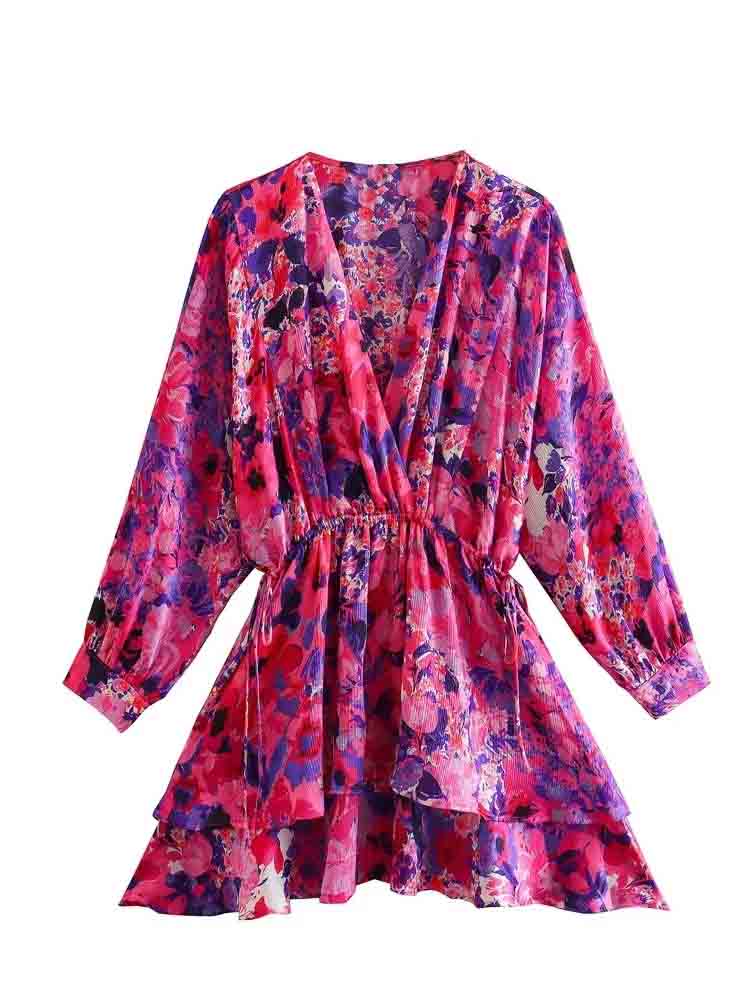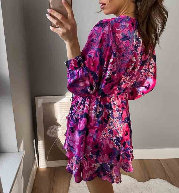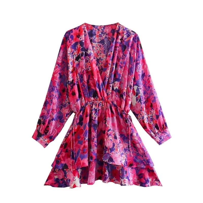 Print Short Dress Woman Ruffles Ruched Mini Dresses for Women Summer Dress Short Sleeve Elegant Party Dresses
