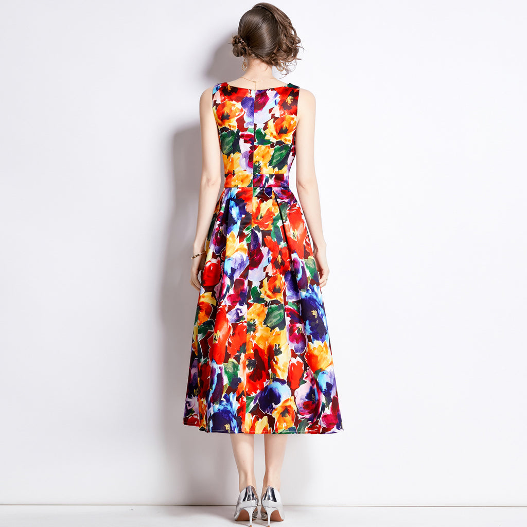 printed vest dress women's 2025 summer dress new waist and thin temperament elegant big swing dress dress