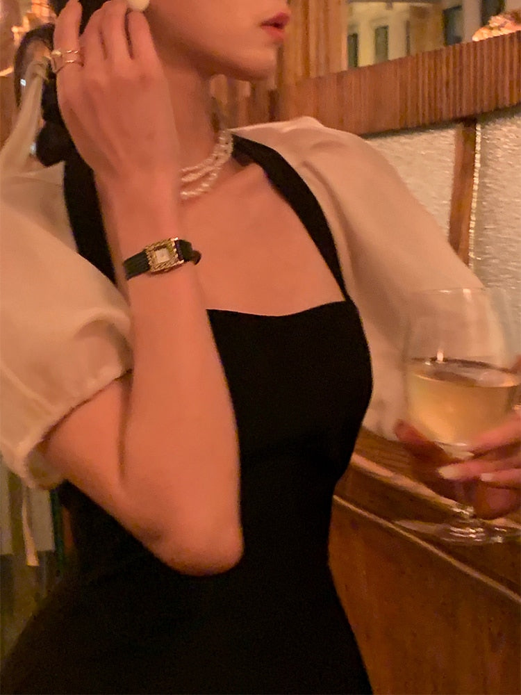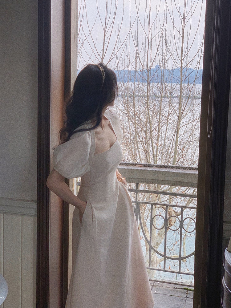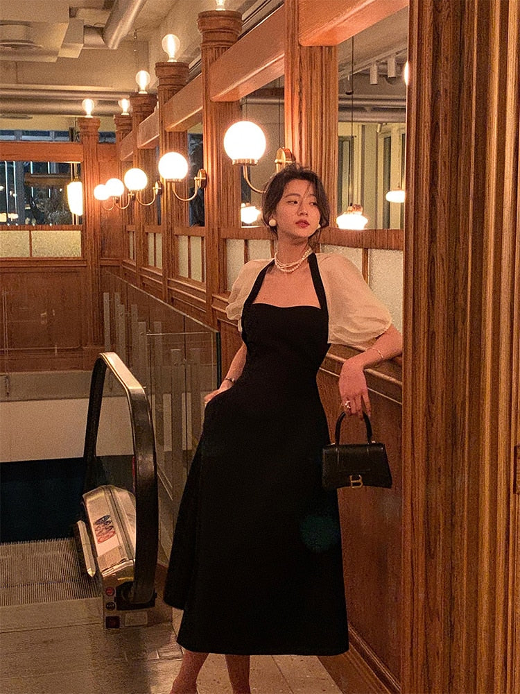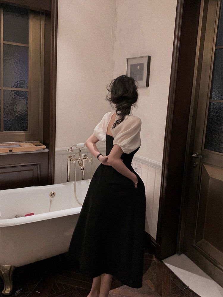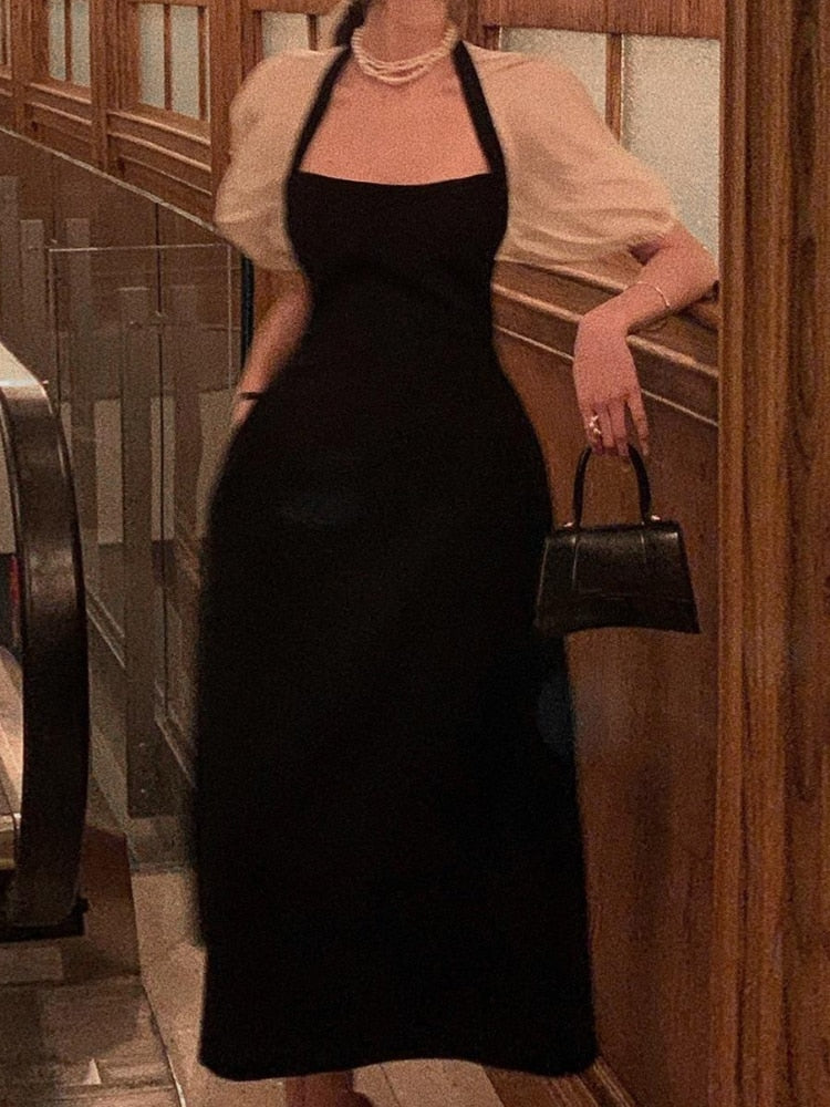 Hulianfu Puff Sleeve Women Elegant Casual Halter Midi Dress Evening Short Sleeve A-Line Party Vestidos Female Fashion Clothes Summer