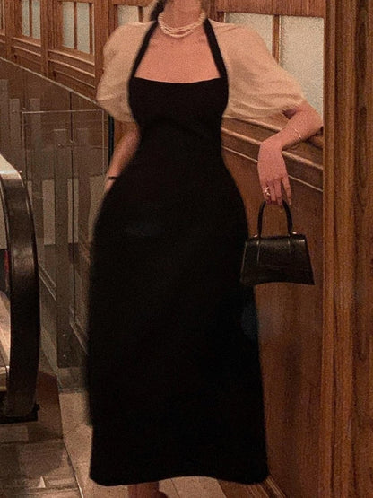 Puff Sleeve Women Elegant Casual Halter Midi Dress Evening Short Sleeve A-Line Party Vestidos Female Fashion Clothes Summer