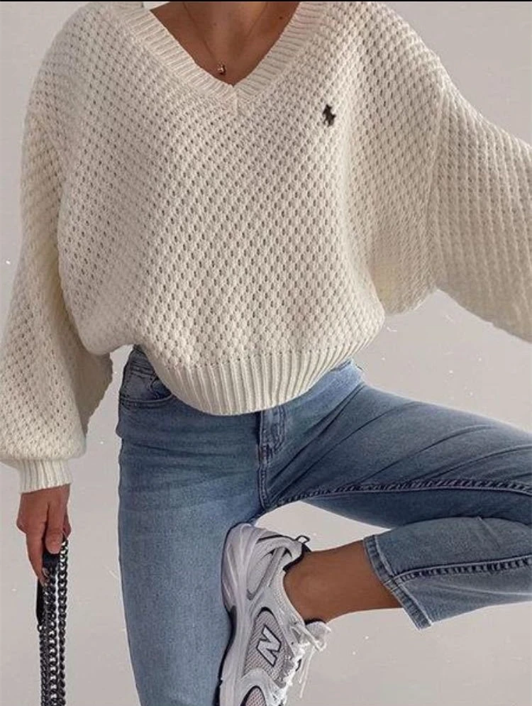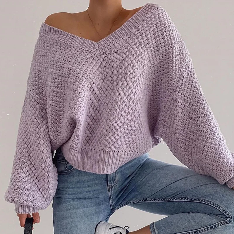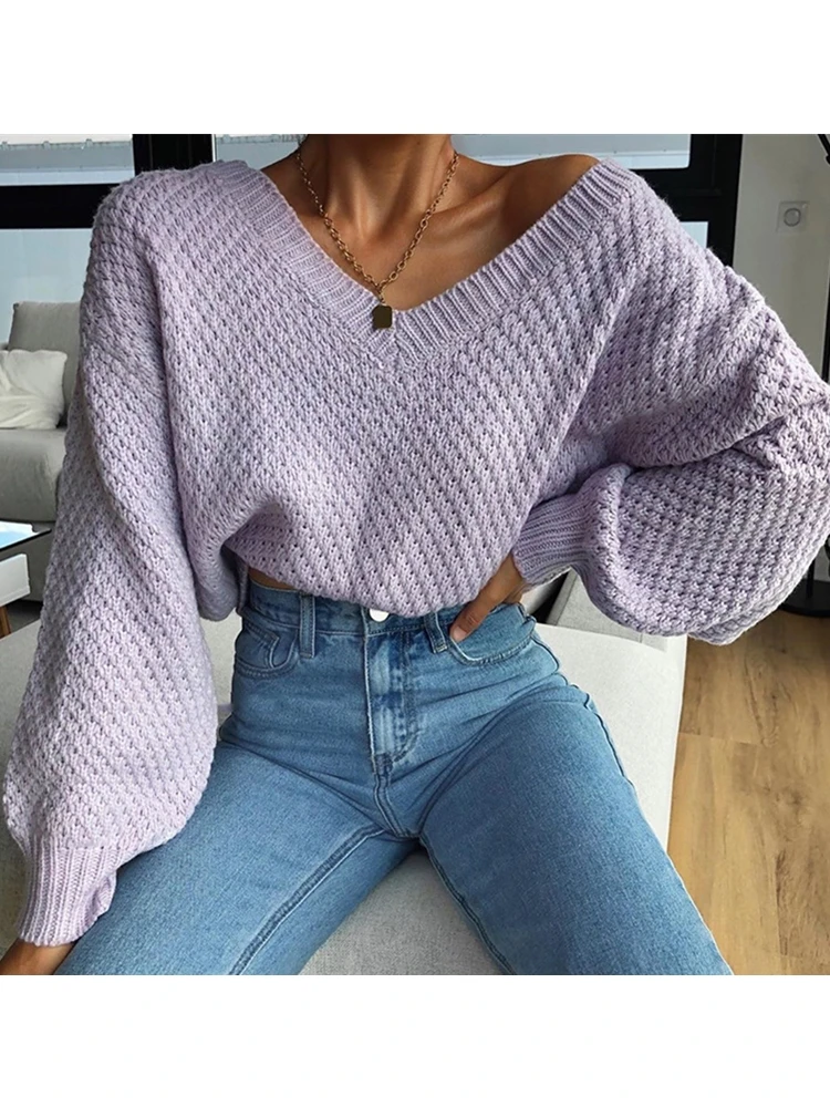 Pullovers Women Autumn Winter Sweaters Solid V-Neck Loose Casual Daily Basic Womens Knitted Basic Chic Long Sleeve Sweater