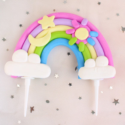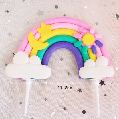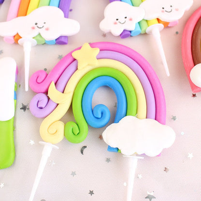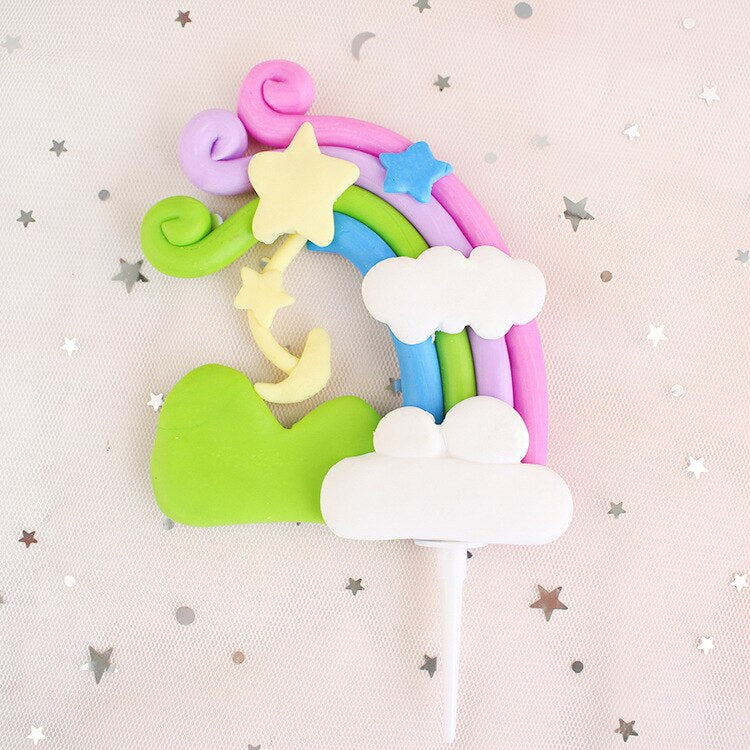 HULIANFU Rainbow Cake Topper Star Cloud Cupcake Decor Sofa Clay Cake Decor Baby Shower One 1st Happy Birthday Party Decor Kids Girl Boy