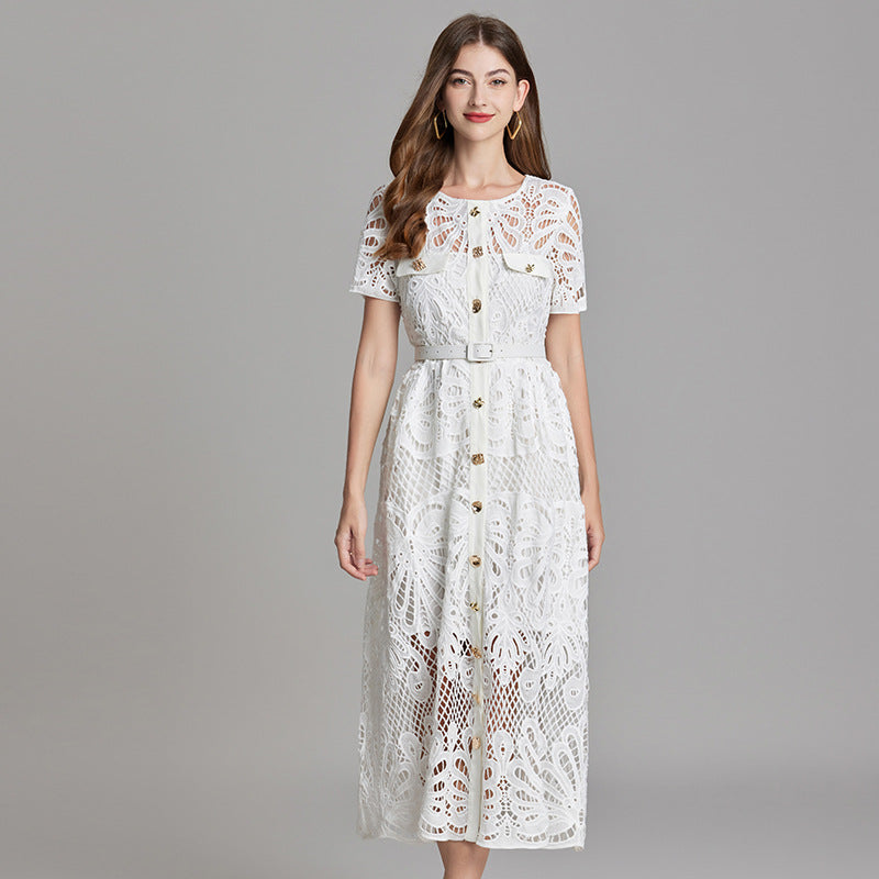 Real shot, high-end new product water-soluble strange button-closed waist pendulum dress, high-waisted A-shaped skirt
