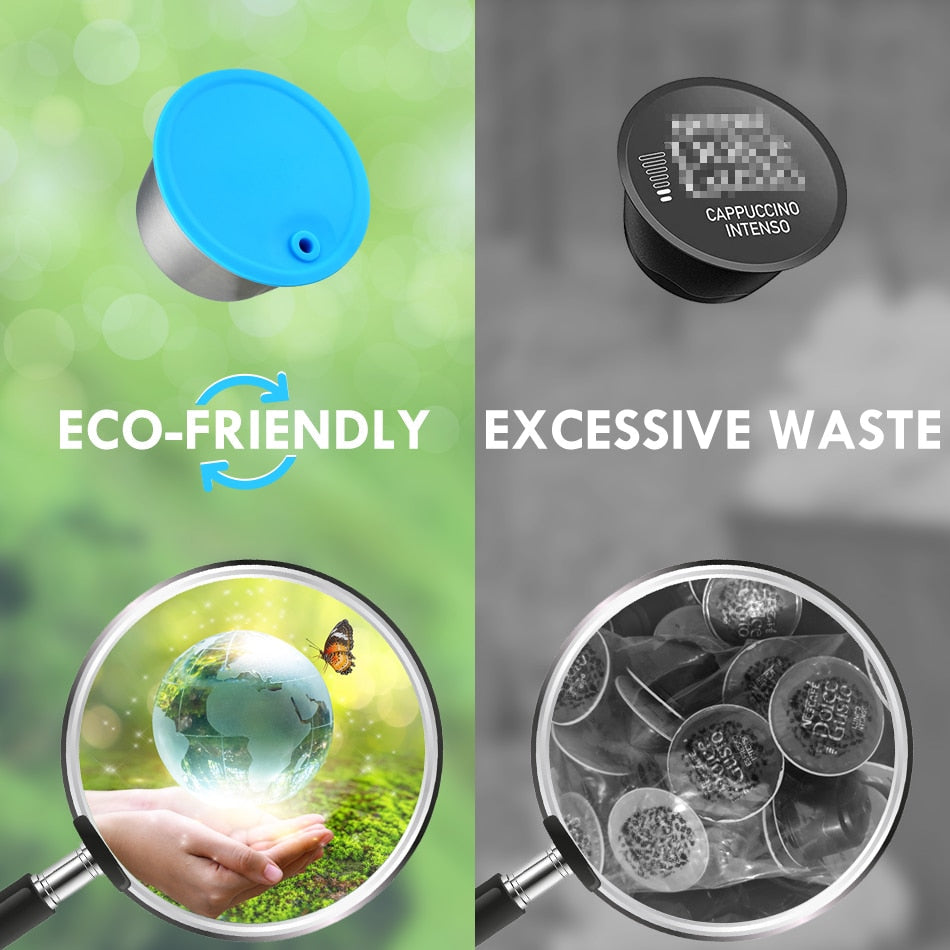 HULIANFU Refillable STAINLESS STEEL Metal Reusable Dolce Gusto Capsule Silicone Cover Dolci Gusto Coffee Machine Coffee Spoon with Clip