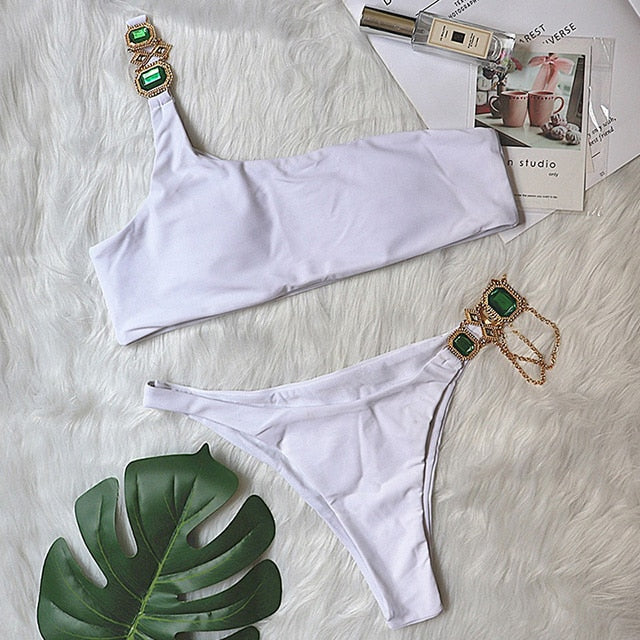 Rhinestone Swimsuit Women Bikinis Crystal Diamond Bikini Set Metal Chain Swimwear female Luxury Aristocratic Swimming Suit