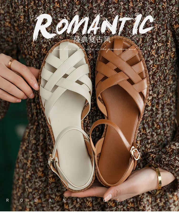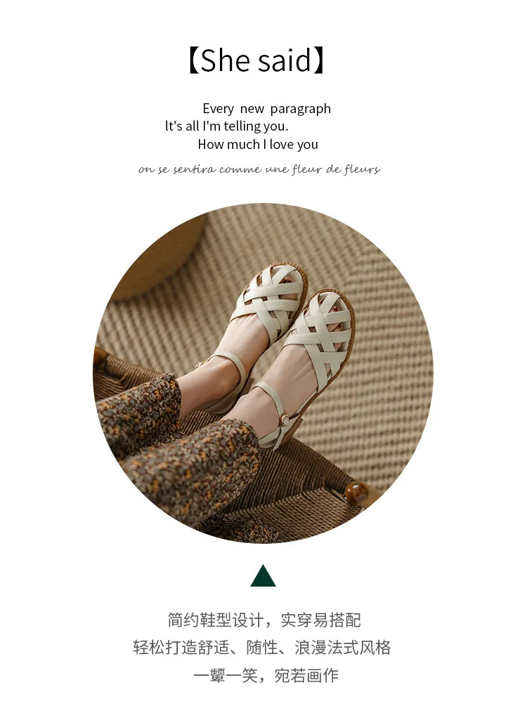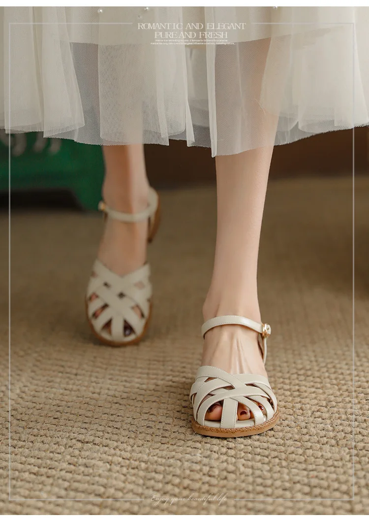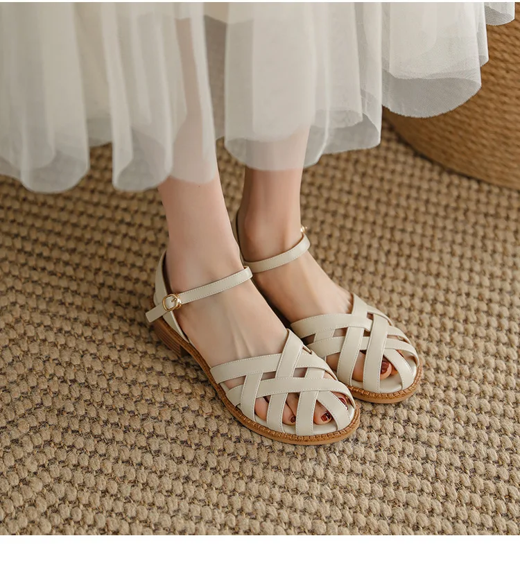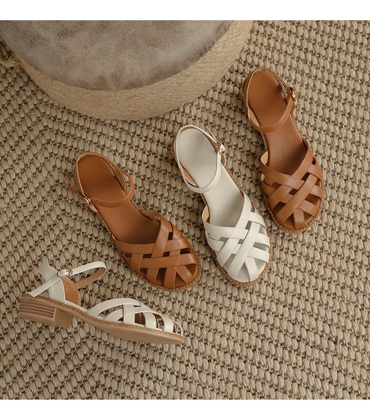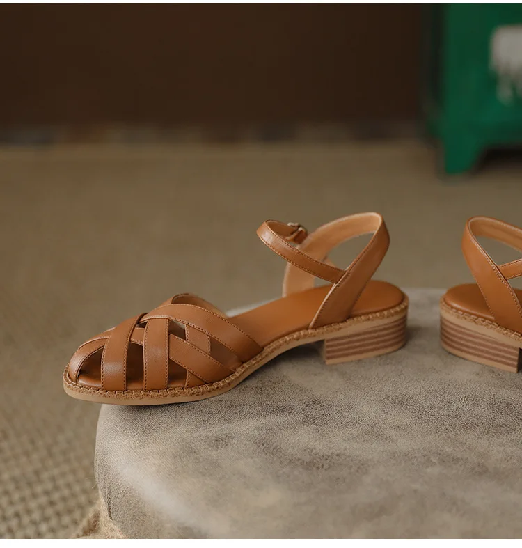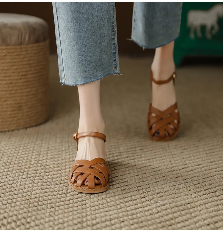 2024 Sandals Retro Woman Shoes Block Heels Suit Female Beige Breathable New Original Chunky Summer Black Girls Low Closed Gladia