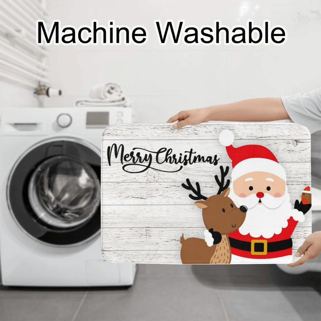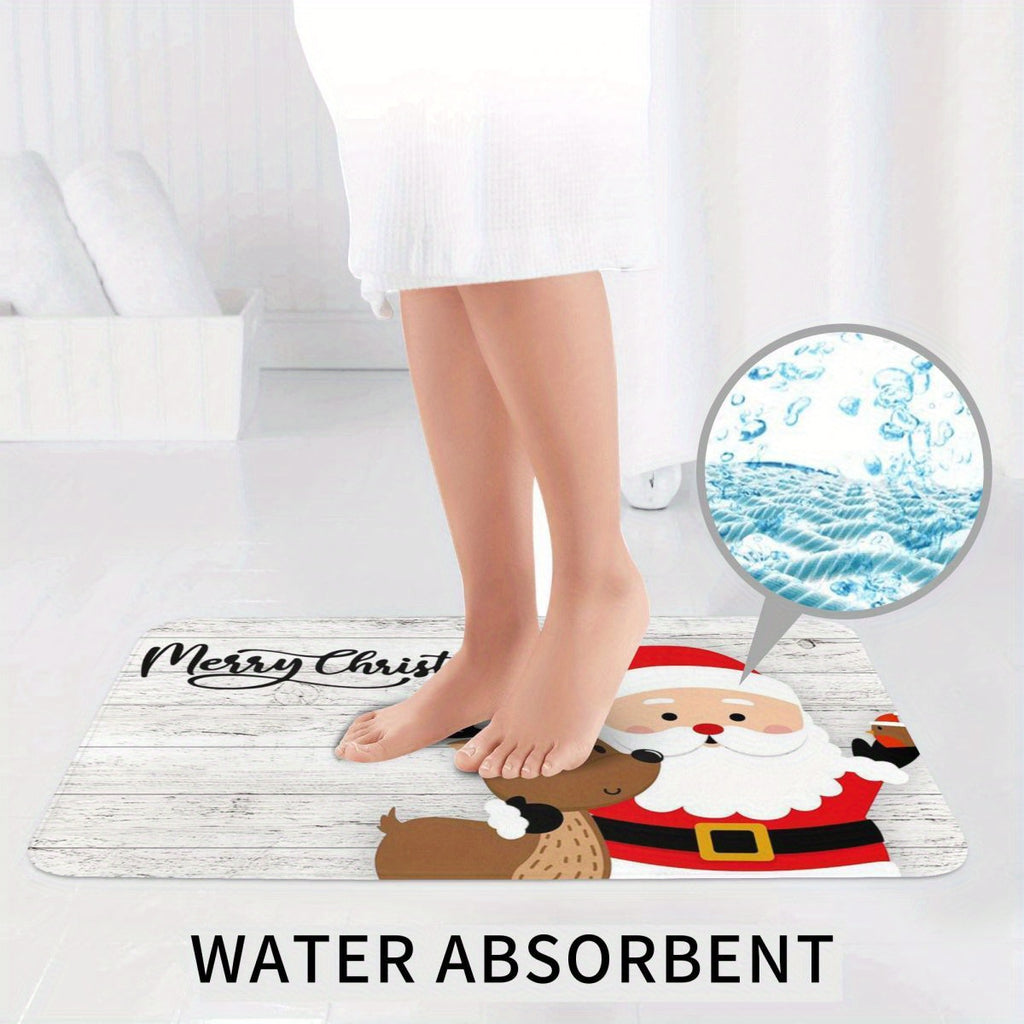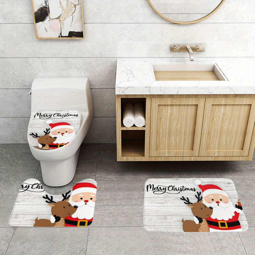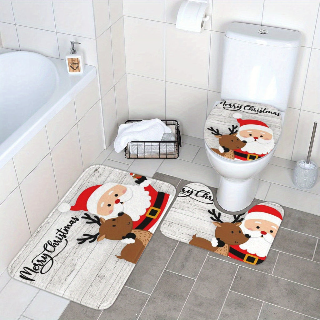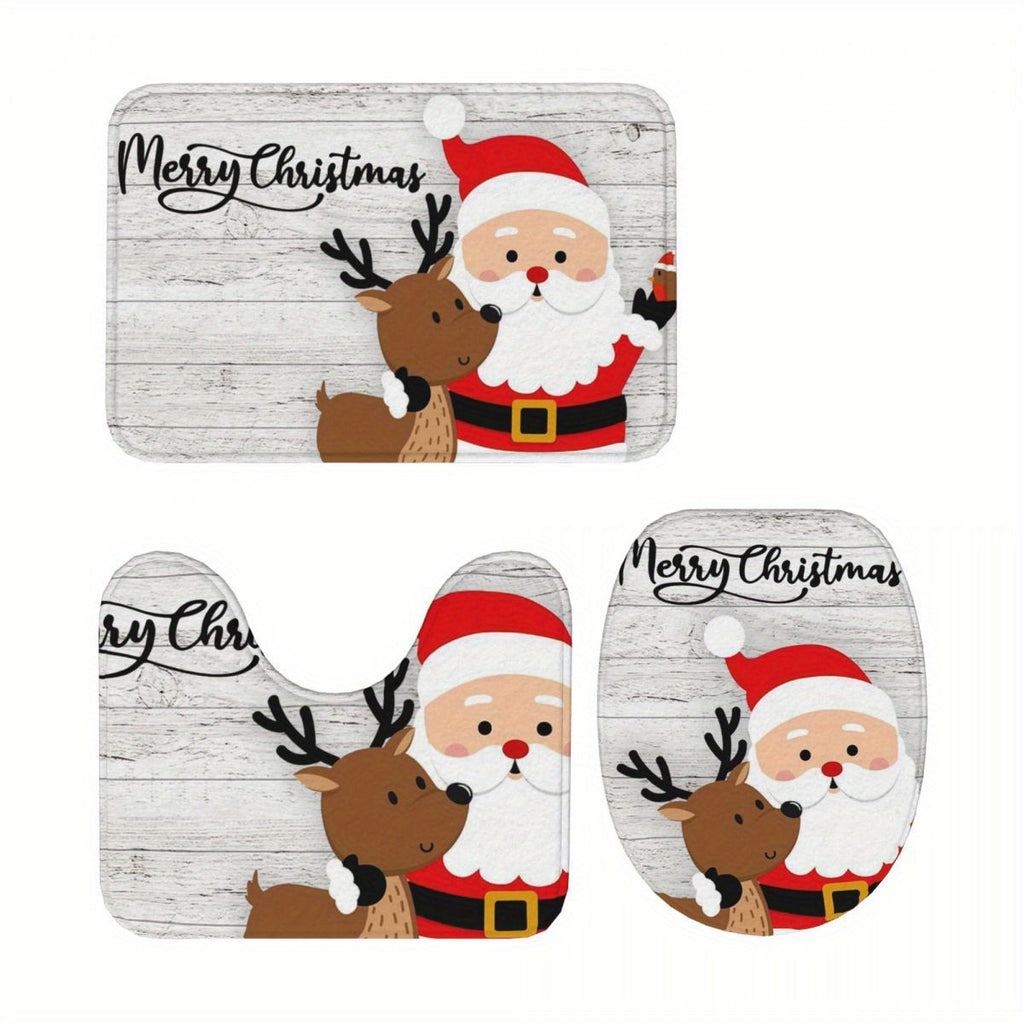Santa Claus Christmas Bathroom Rug Set - 3pcs Polyester Blend Knit Fabric Bath Mats with Geometric Pattern, Washable, Non-Slip Rubber Backing, 100gsm Weight, Oblong Shape