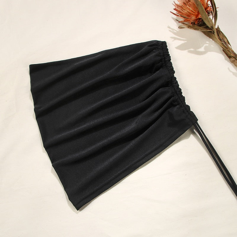 Sexy 3-Piece Bikinis Suit Halter Swimwear Women Beachwear Wave Point Swimsuit Female Holiday Beach Skirt Black Bikini Set