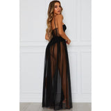 Sexy Women Boho Retro See-through Bodycon Spaghetti Strap Long Dress Elastic High Waist Party Summer Beach Bodysuit Sundress