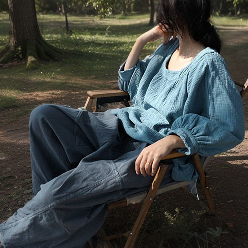 Shan Qian Nianyi, the texture of spring and autumn is quite wide, loose wide-leg pants, literary and retro washed cotton and linen old casual pants