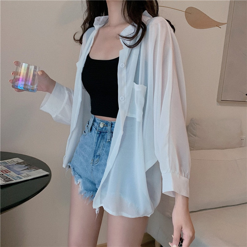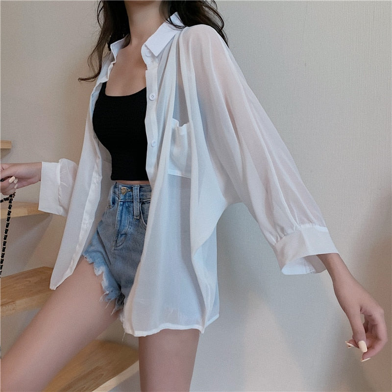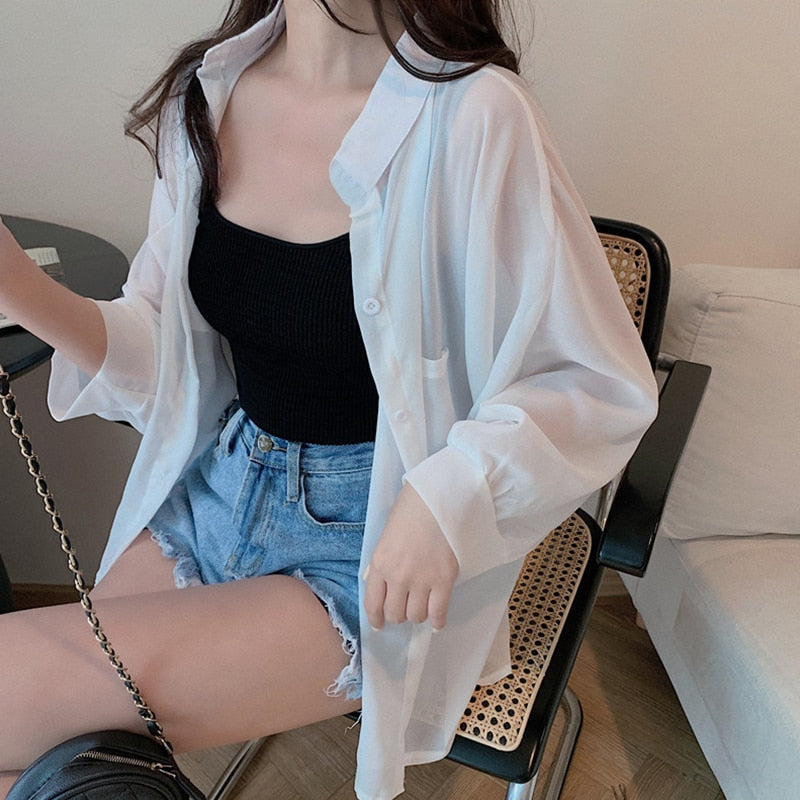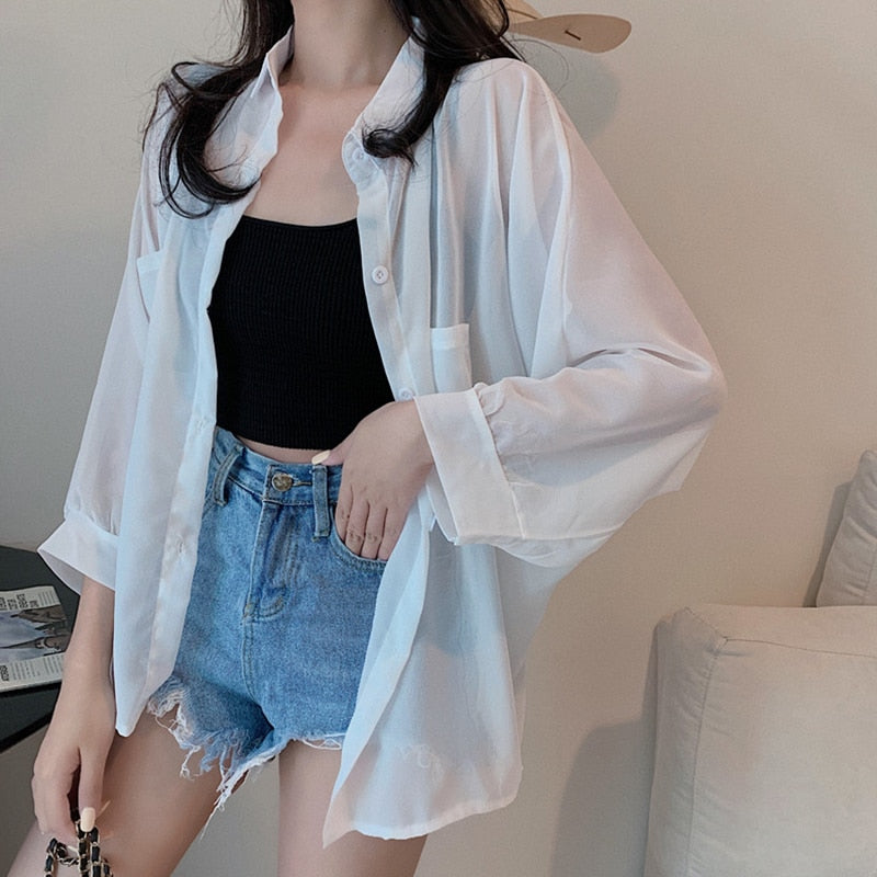Shirts Women Sun Protection Loose All-match Summer Korean Style Casual Solid Tops Fashion Simple Chic Outerwear Thin Baggy Soft