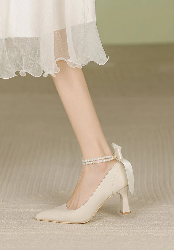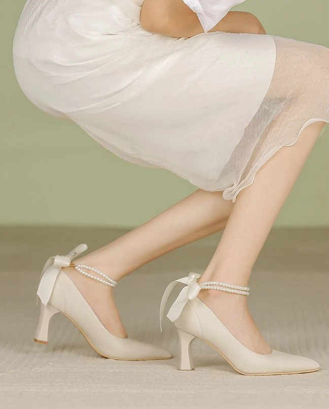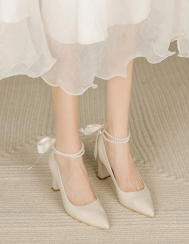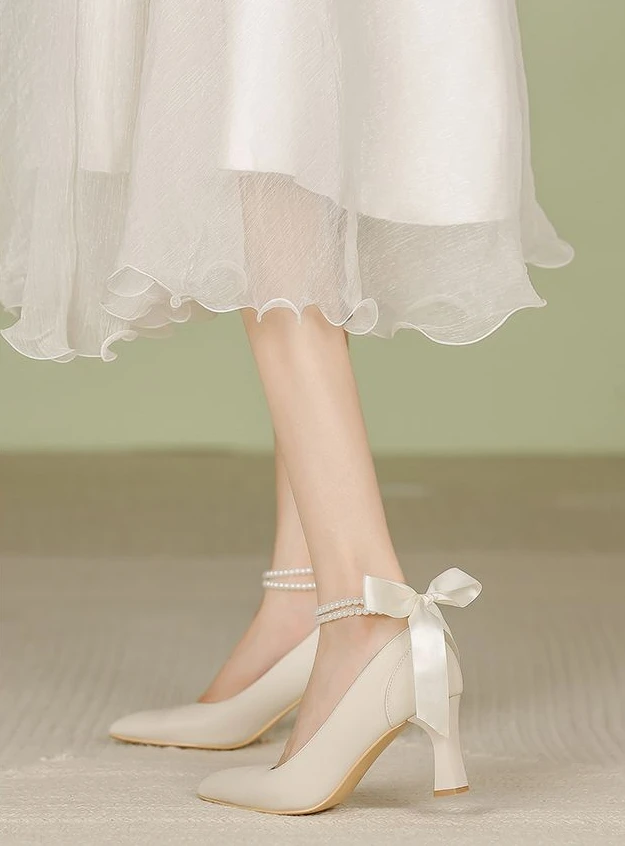 Shoes for Woman Pumps High Heels Women's Summer Footwear on Heeled Moccasins with Straps Chunky Bow Bride Block Heel Young