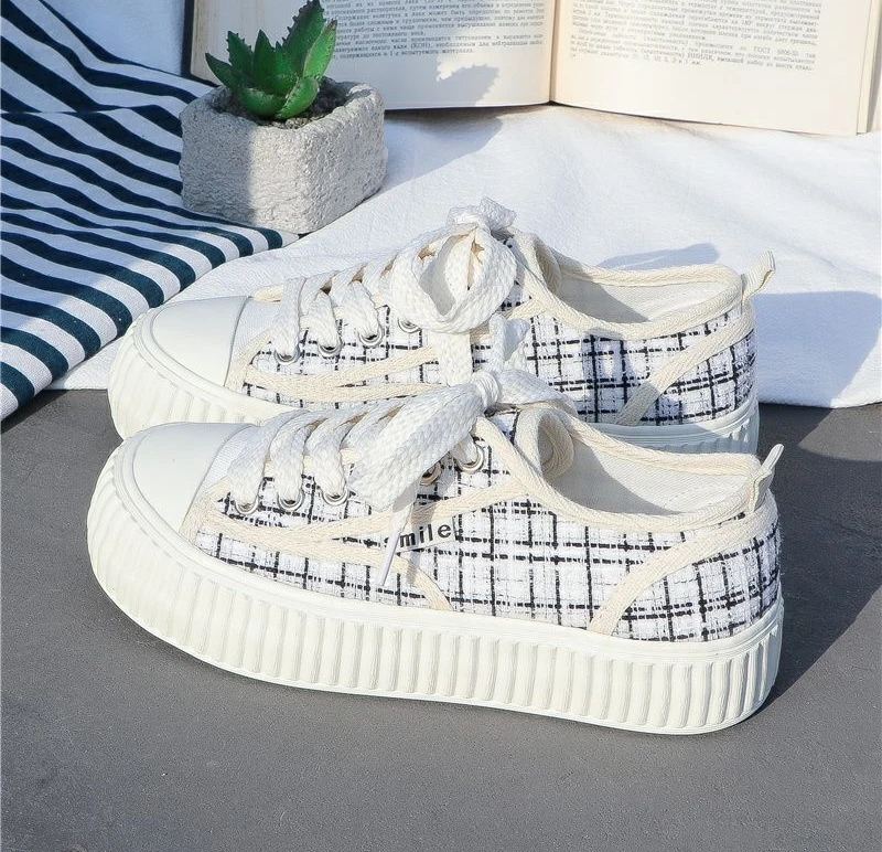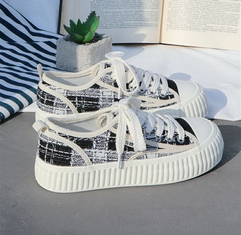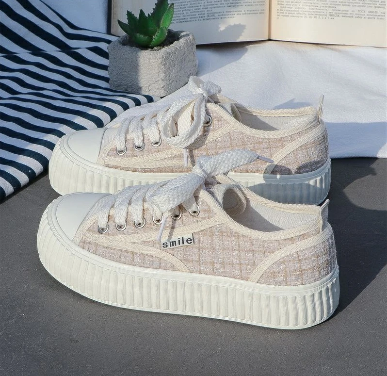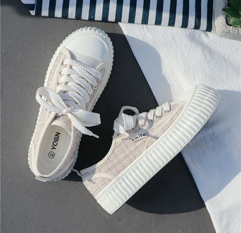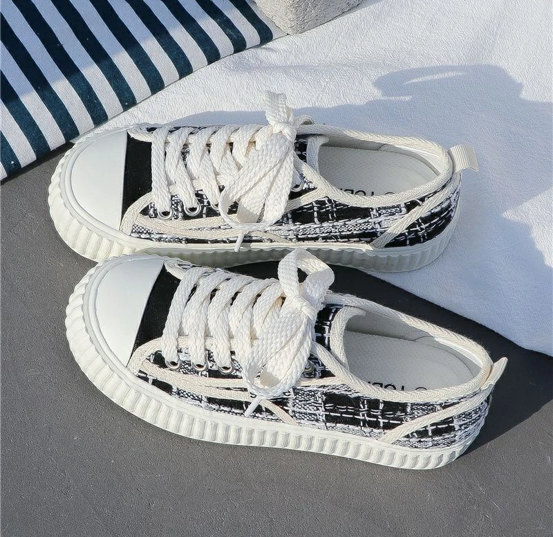 Shoes for Women Canvas Low Woman Footwear White Round Toe 39 Trends Vulcanized Offers Free Shipping Cheap New Arrival Offer