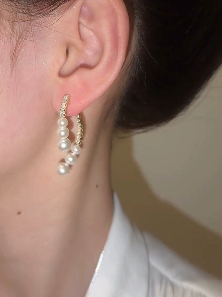 Silver needle crossed pearl diamond earrings women's exquisite light luxury high-end stud earrings niche design temperament versatile earrings