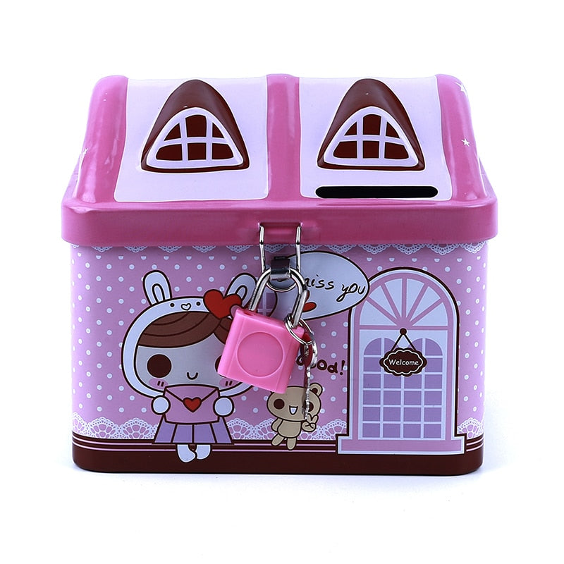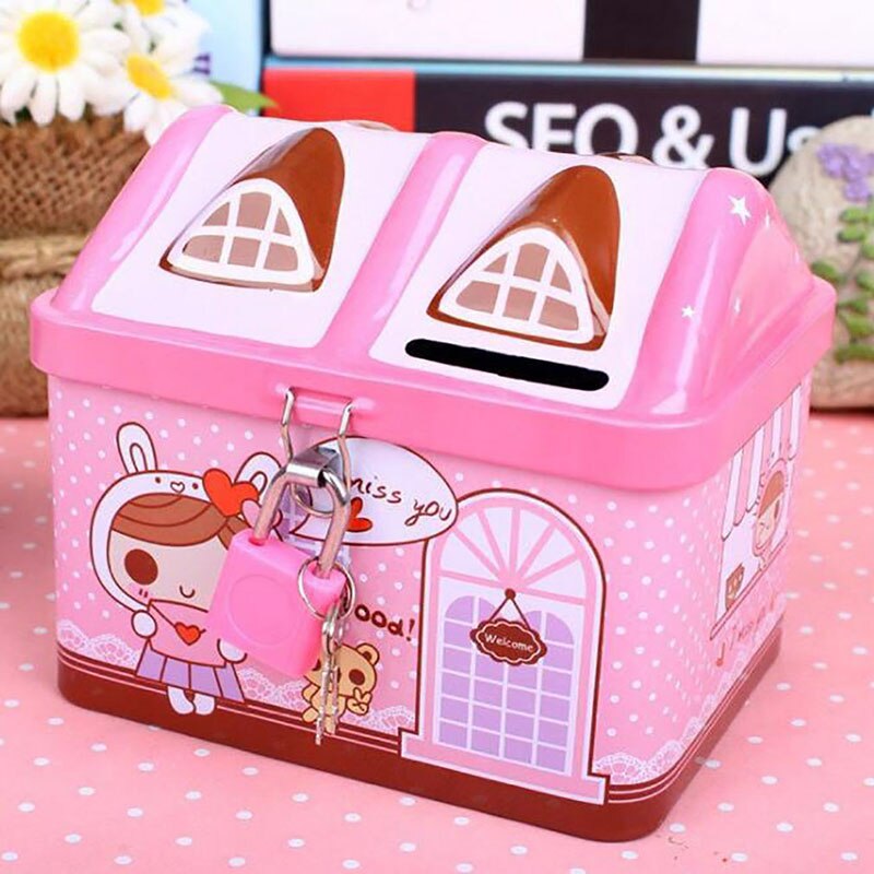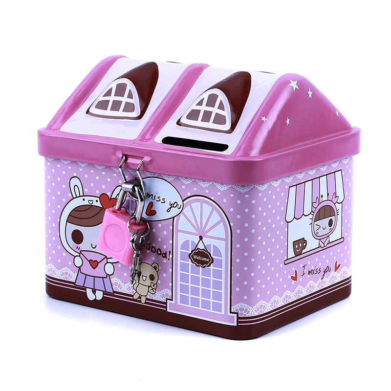 HULIANFU Small House Cute Piggy Bank Money Box Tinplate Saving Bank Best Gift For Children Money Saving Banks Gift