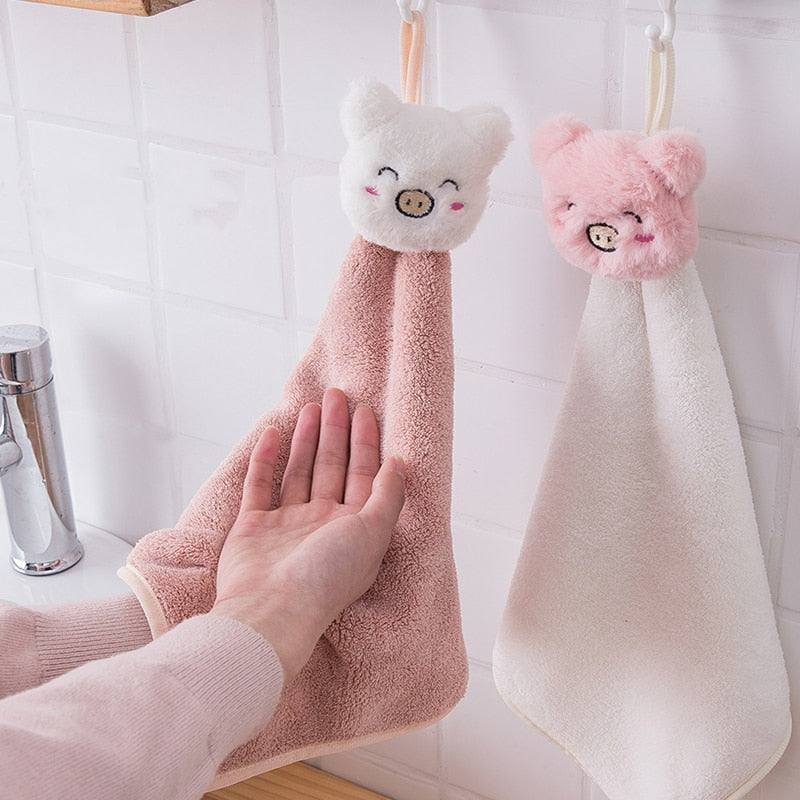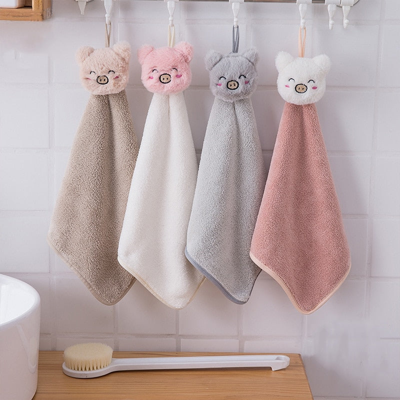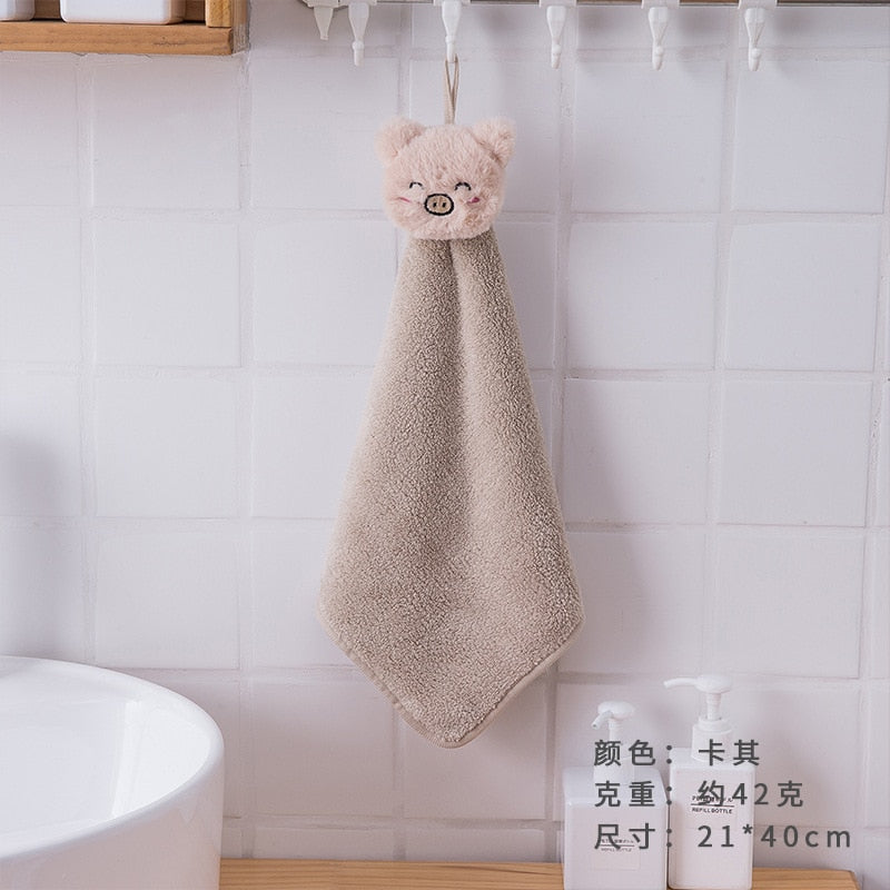 HULIANFU Soft Baby Towel Cartoon Animal Hand Towel Hanging Face Towel Cute Absorbent Bathing Towel For Bathroom Kitchen Quick Dry Towel