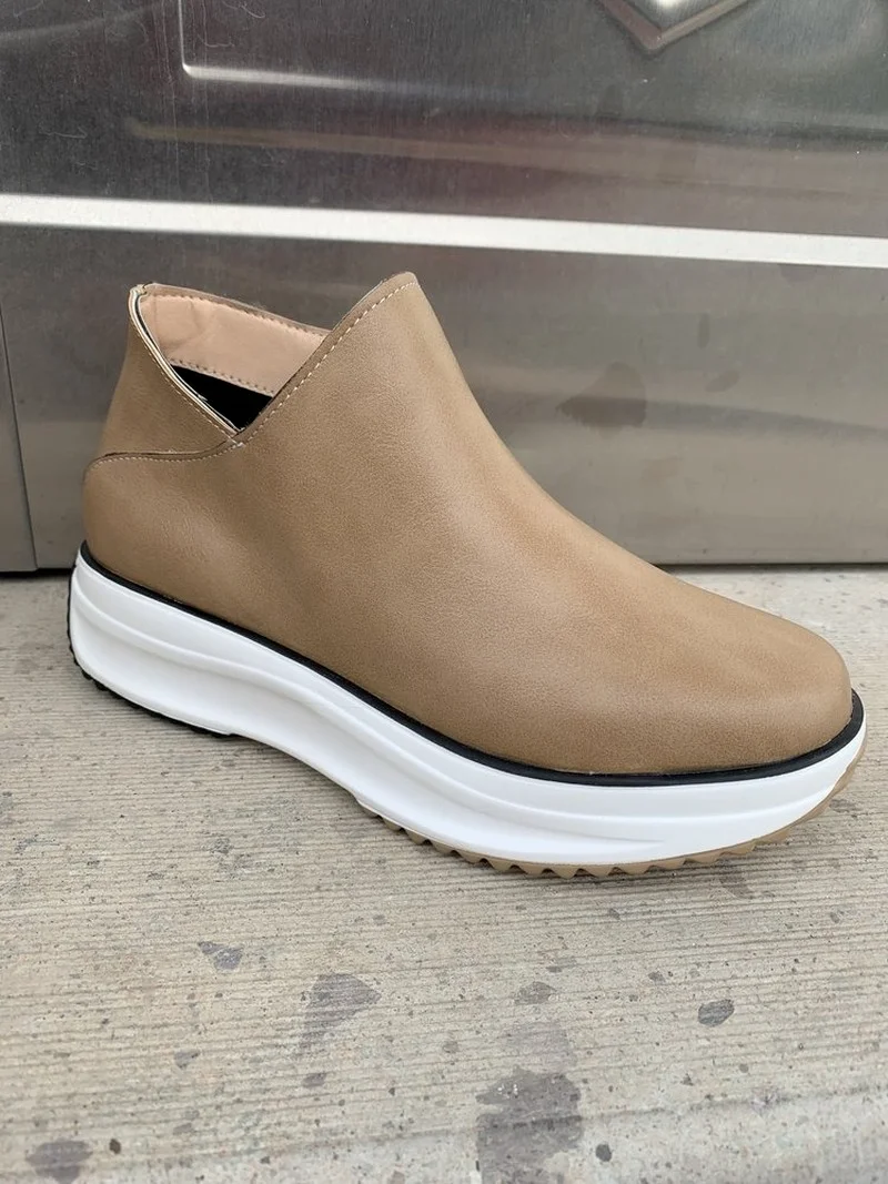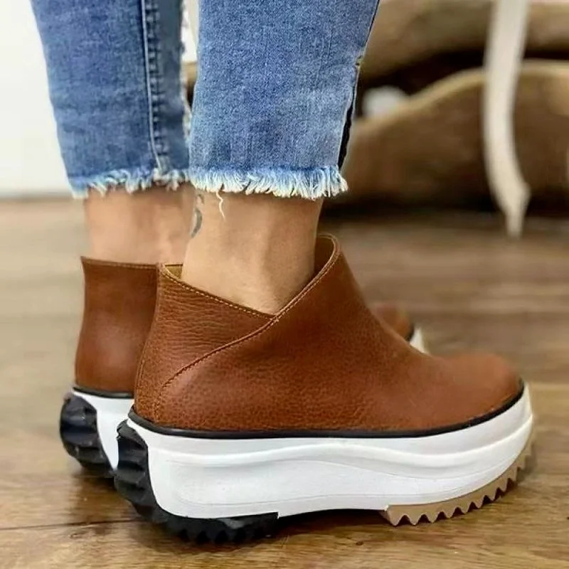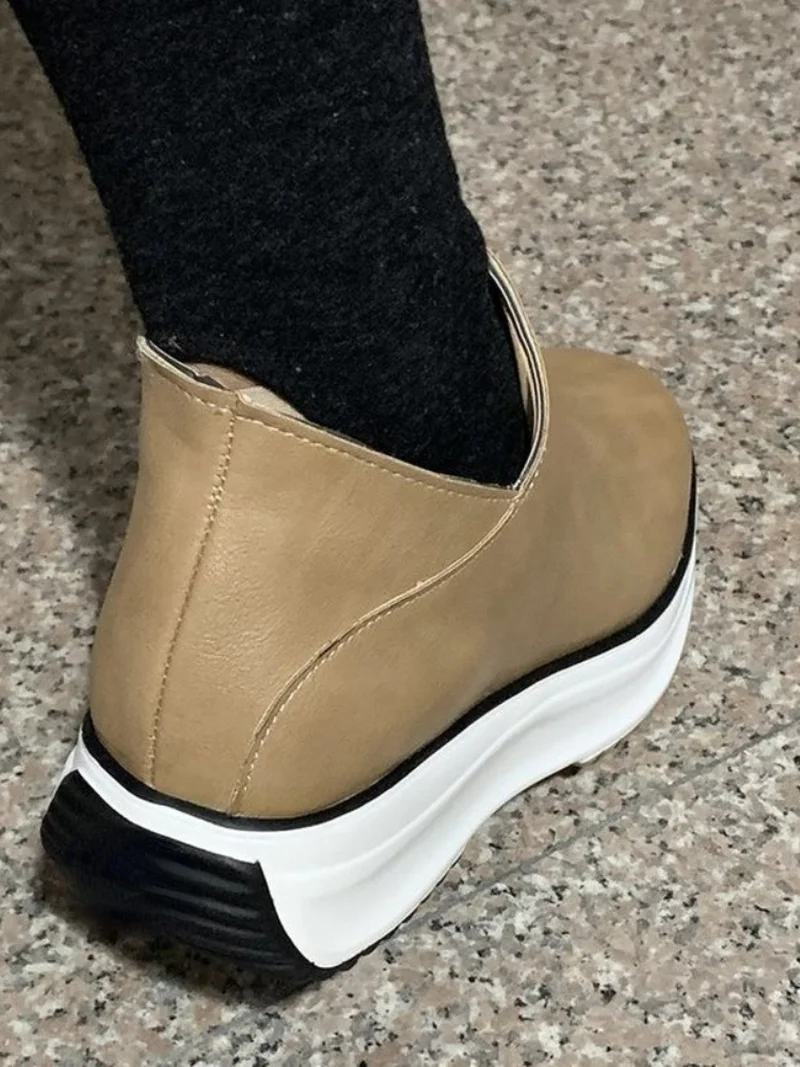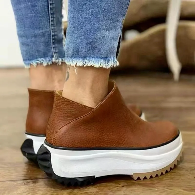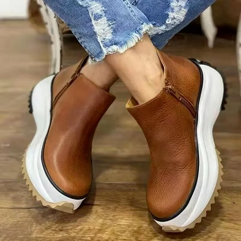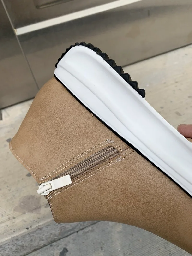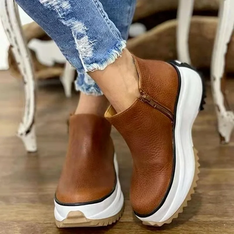 hulianfu Spring and Autumn Fashion Women Vulcanized Shoes Plus Size Fashion Platform Work Shoes Women Round Toe Mid Heel Zipper Sneakers