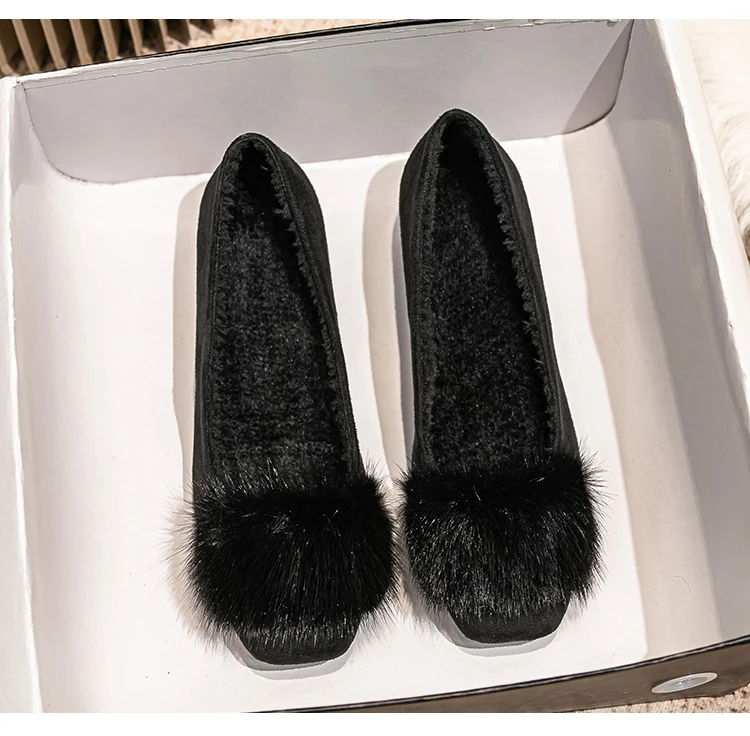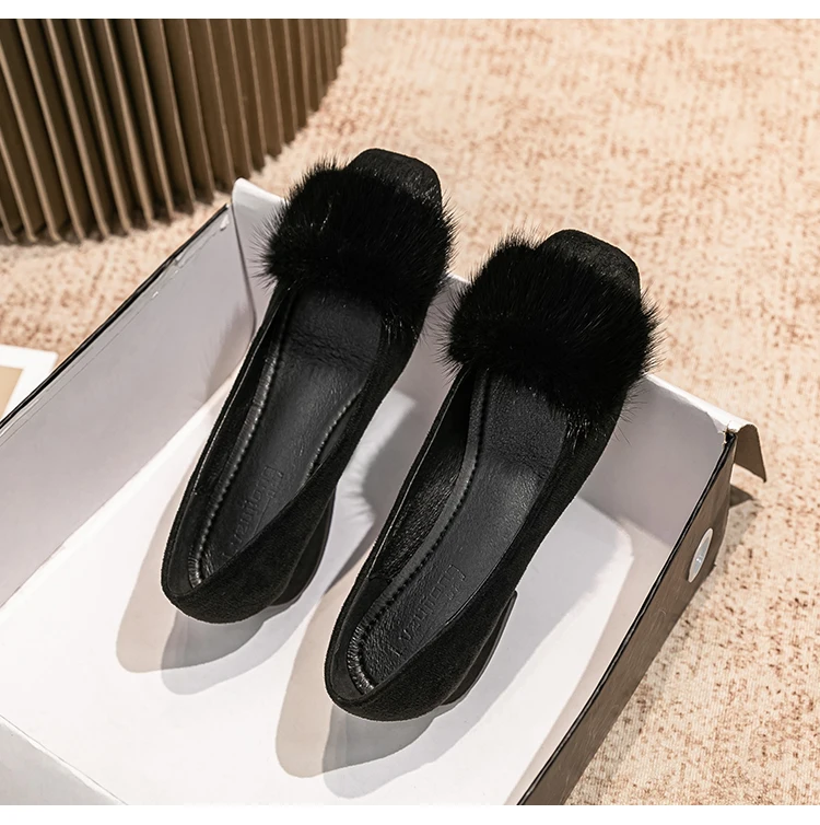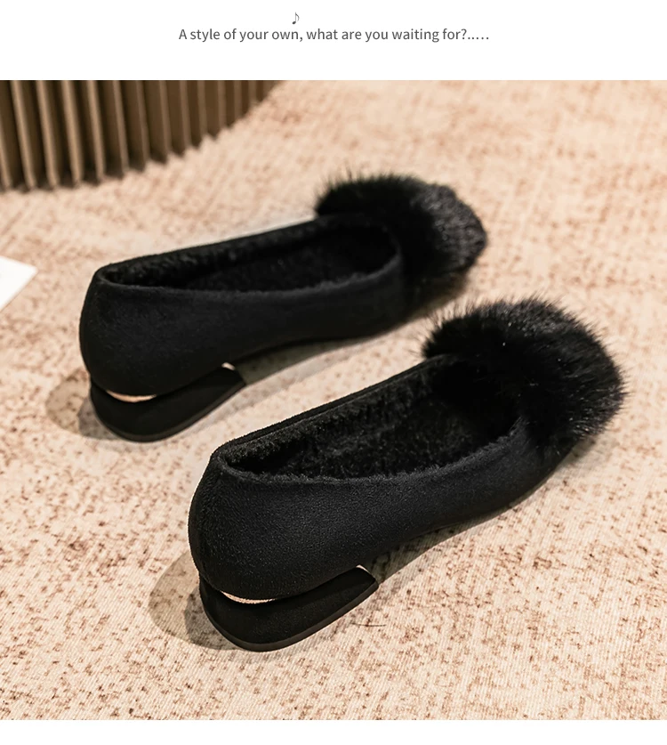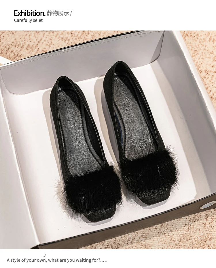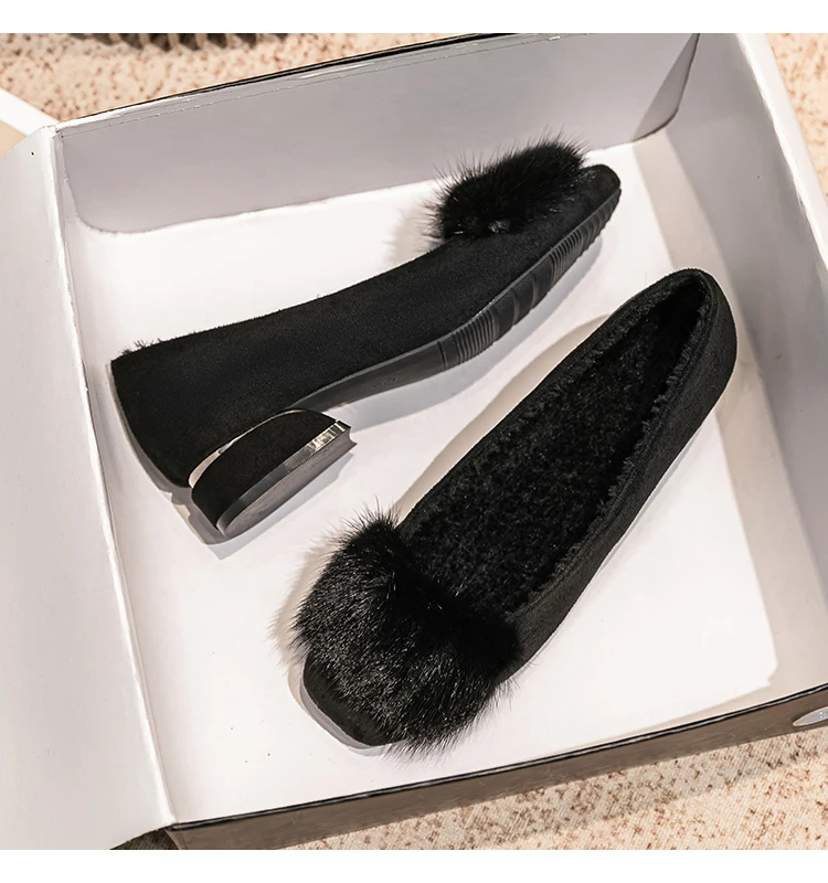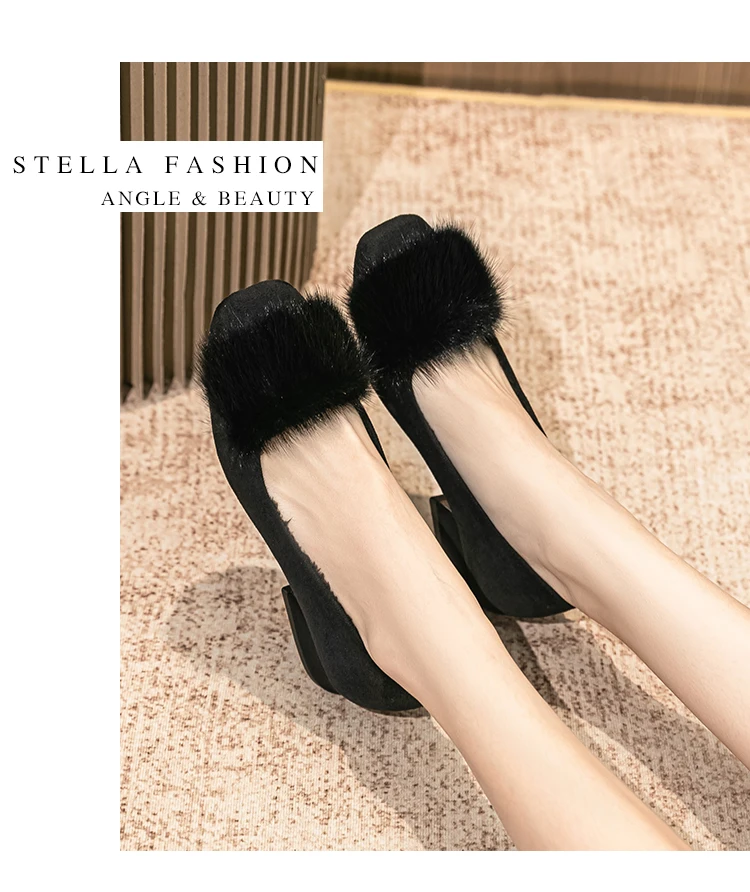 Spring/fall new Black high-heeled women Fashion Korean brand design square head plush low single shoes Free shipping