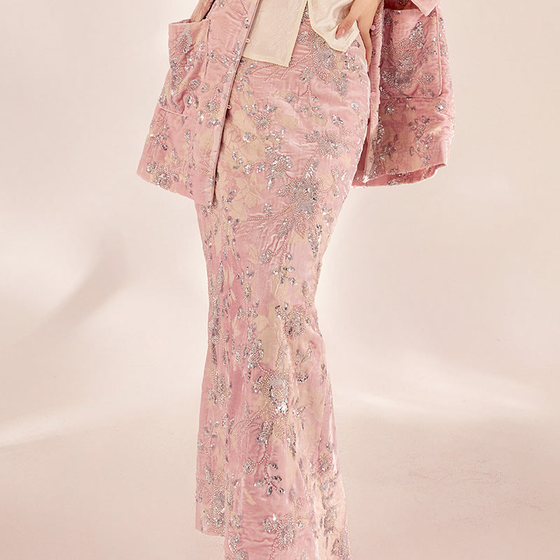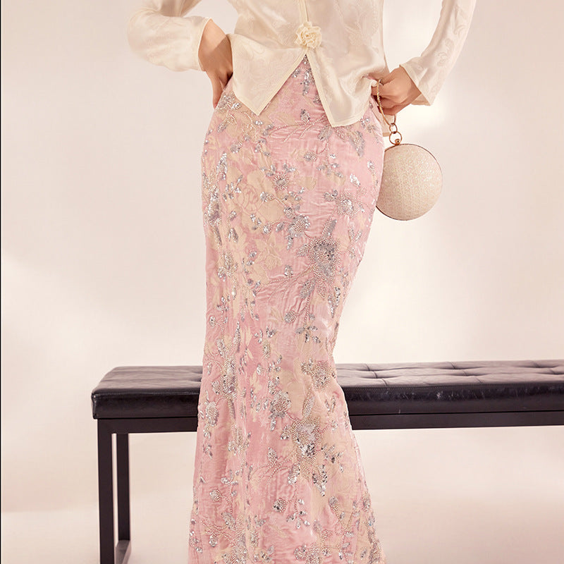 Spring New Guofeng Heavy Industry Embroidered Long Dress Women's New Chinese Fashion Sequin Slim Hip Wrap Skirt MZ085