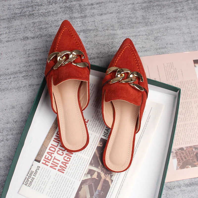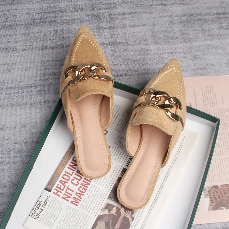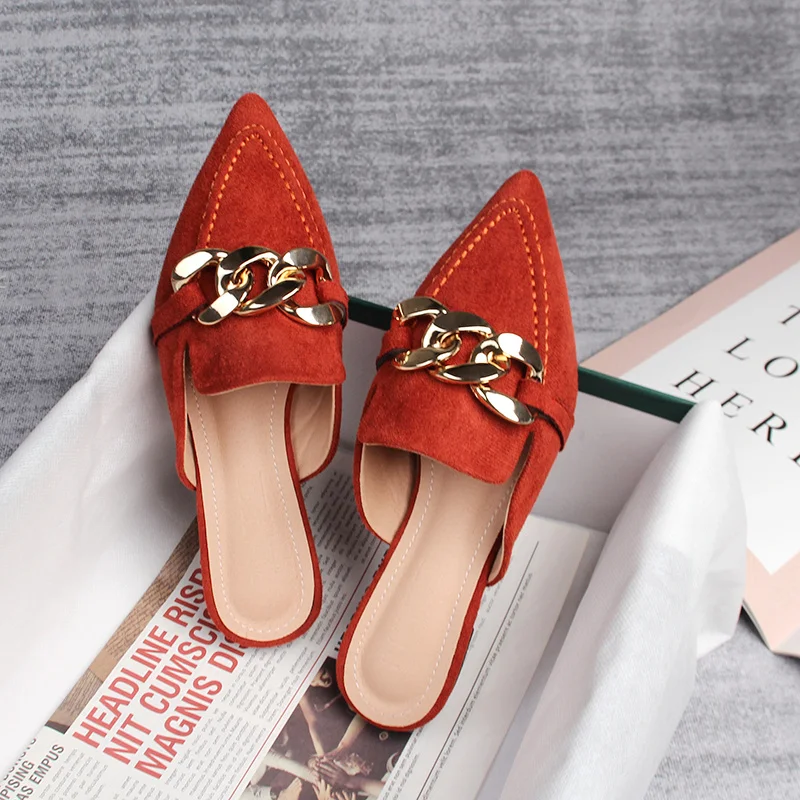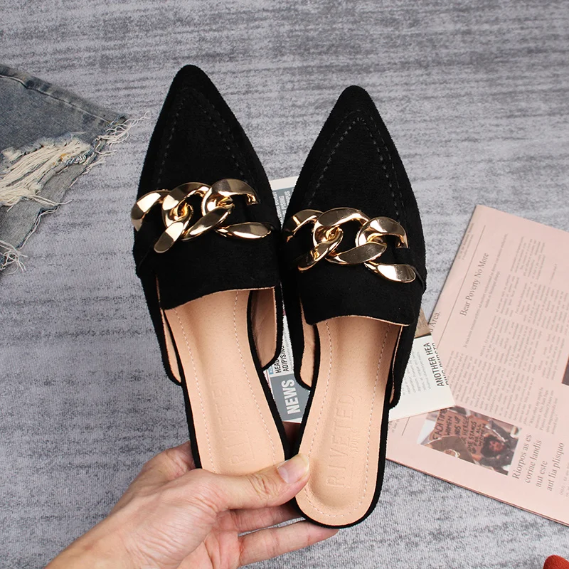 Spring new women's mules Pointed slippers outdoors Muller Fashion metal chain design Office casual shoes Large size 41-43