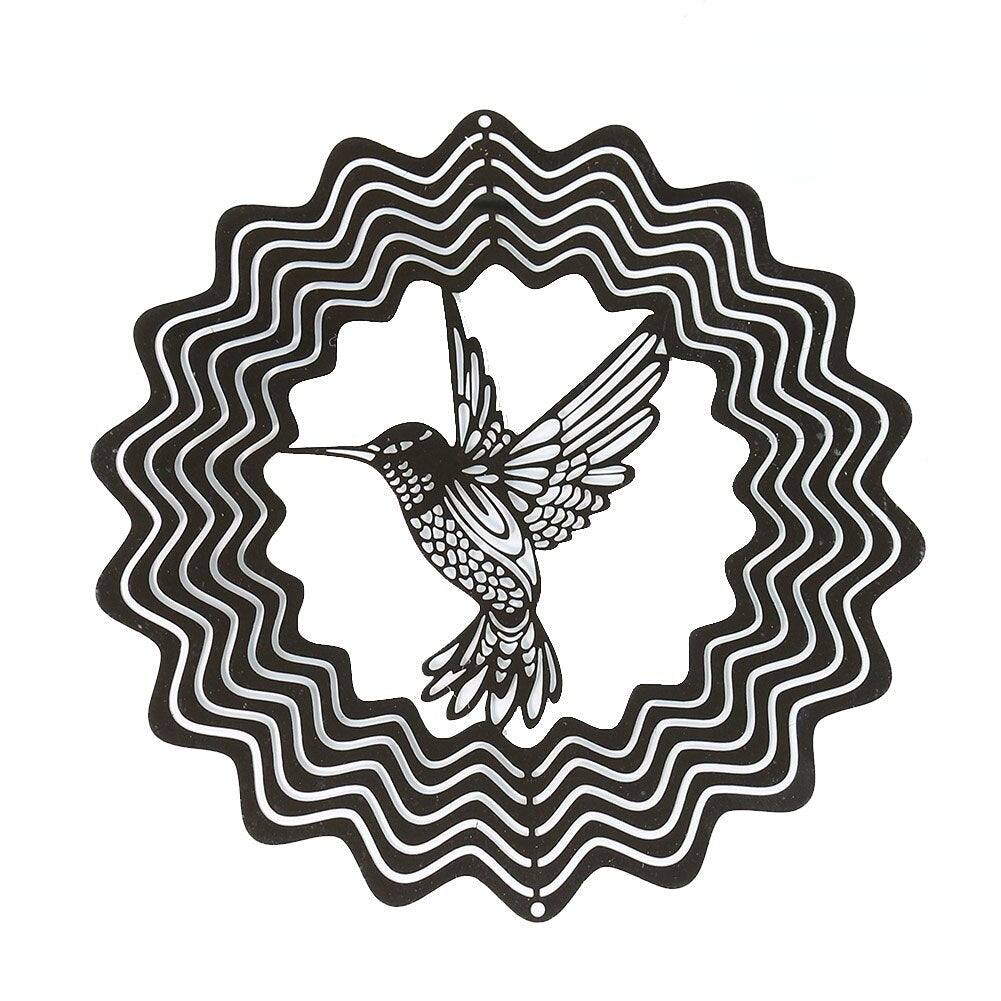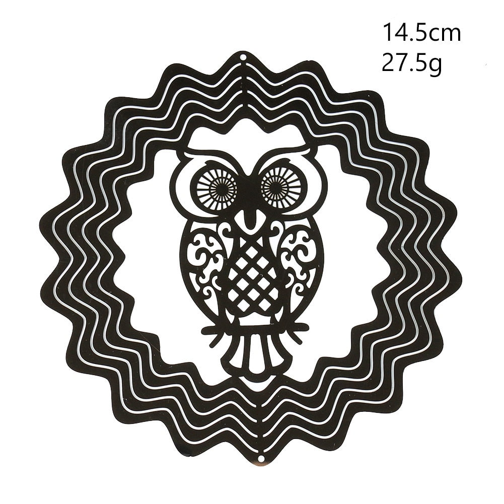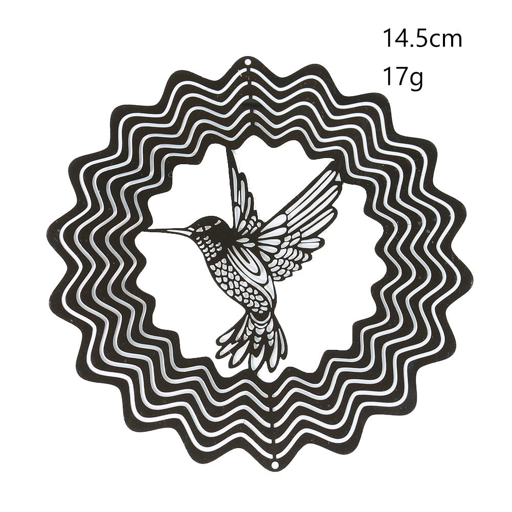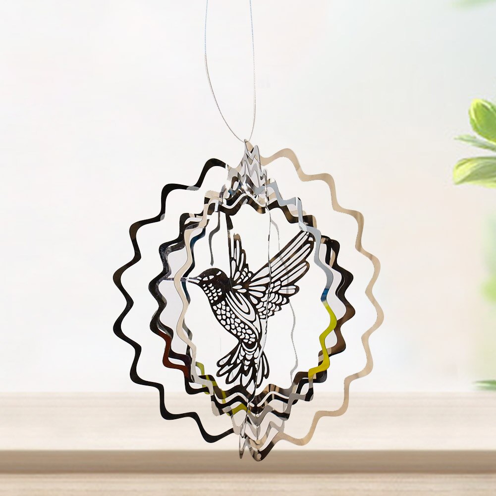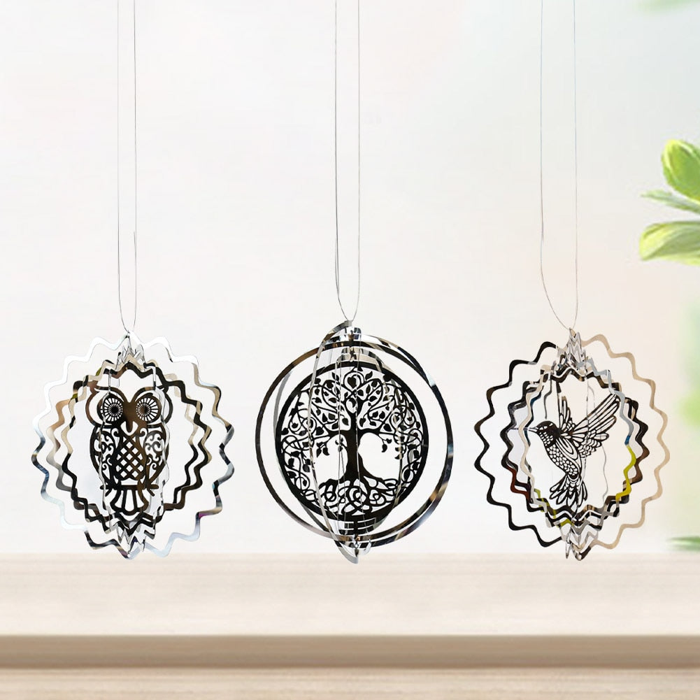 HULIANFU Stainless Steel 3D Rotating Wind Chimes Hummingbird Life Tree Owl Hanging Ornaments Outdoor Home Garden Farmhouse Spiner Decor