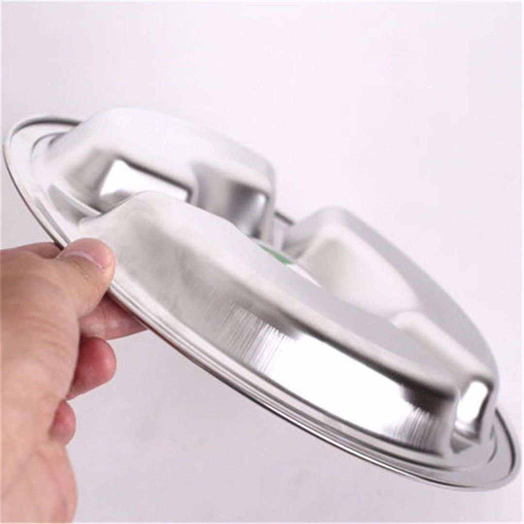 HULIANFU Stainless Steel Dinner Plate 3 Sections Round Divided Dish Children Fruit Snack Tray Baby Bowls Kitchen Tableware Dia 22/24/26cm