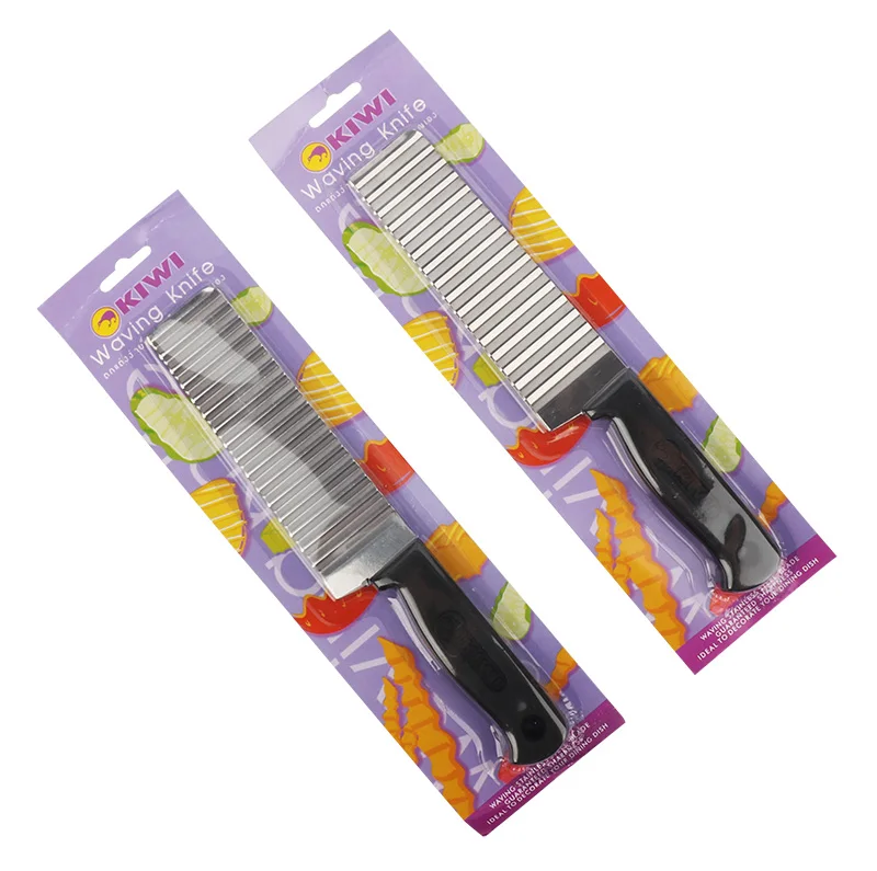 HULIANFU Stainless Steel Potato Chip Slicer Dough Vegetable Fruit Crinkle Wavy Slicer Knife Potato Cutter Chopper French Fry Maker Tools