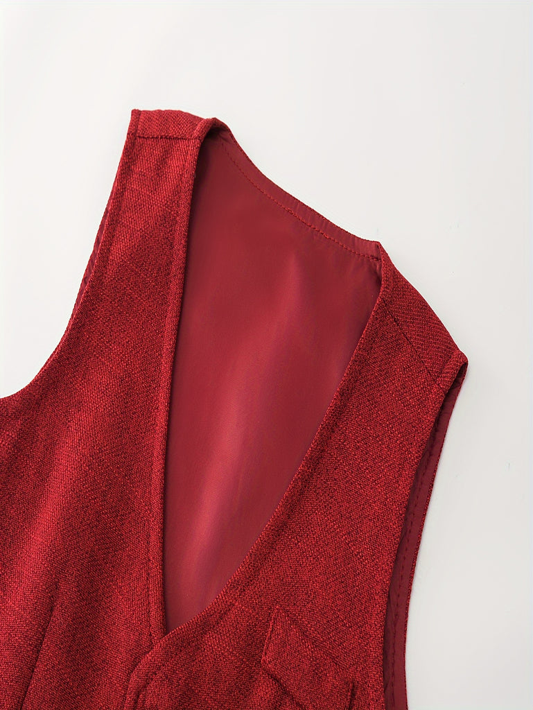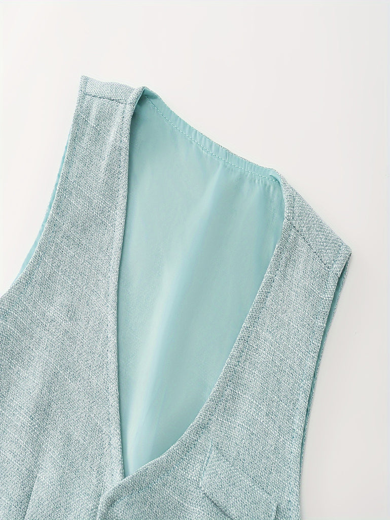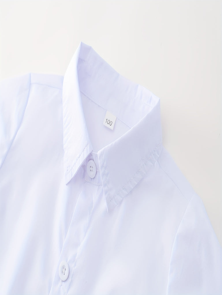 Stylish Gentleman Suit Set - V-Neck Vest, Long Sleeve Shirt, Long Pants, Bow Tie - Solid Color Polyester Blend Outfit for Boys' Formal All-Season Celebrations, Parties, and Special Occasions
