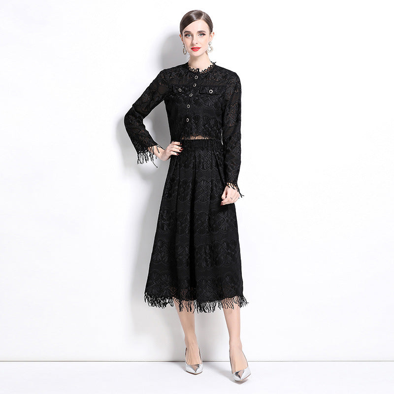 suit women's spring new age-reducing long-sleeved short top versatile umbrella skirt skirt fashionable two-piece set